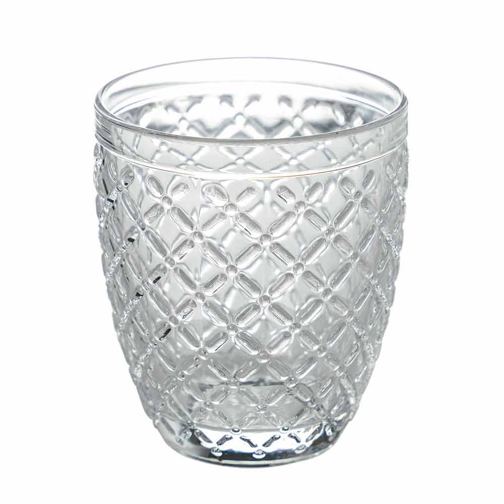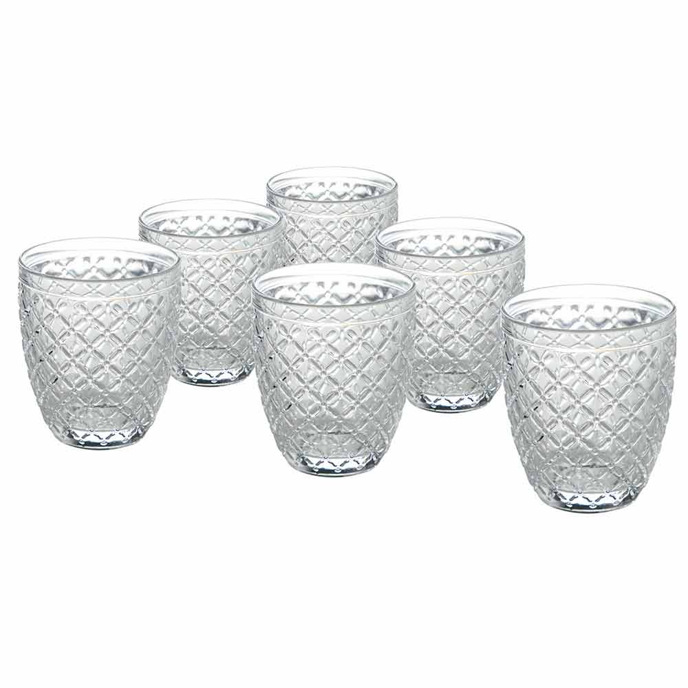Sæt med gennemsigtige farvede vandbriller i glas med udskårne dekorationer, 12 stk.