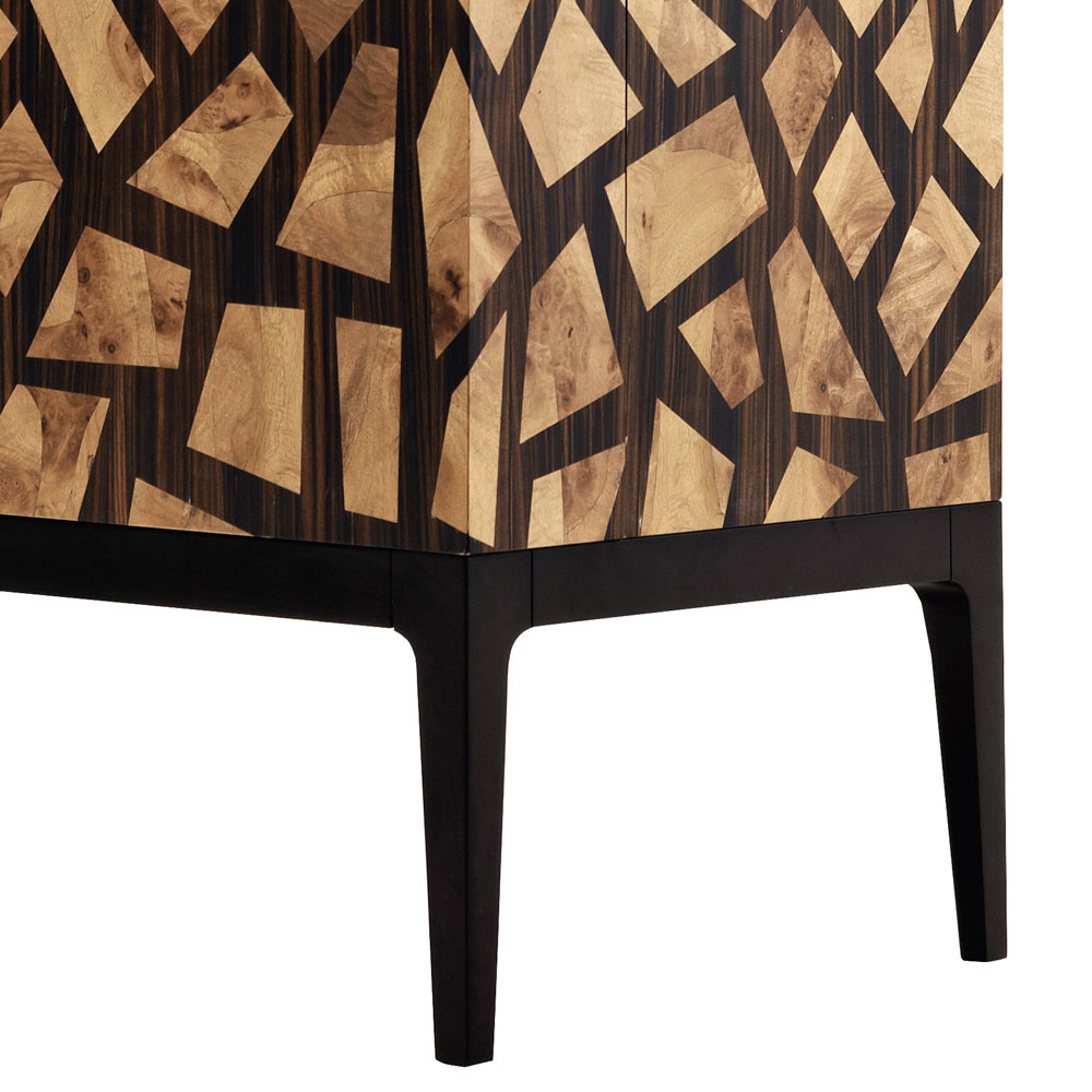 Zarafa mobilbjælke med to døre er karakteriseret ved en elegant og raffineret stil takket være dens geometriske linjer, der genkalder kappen af en berømt giraf givet til kongen i Frankrig i det 19. århundrede.