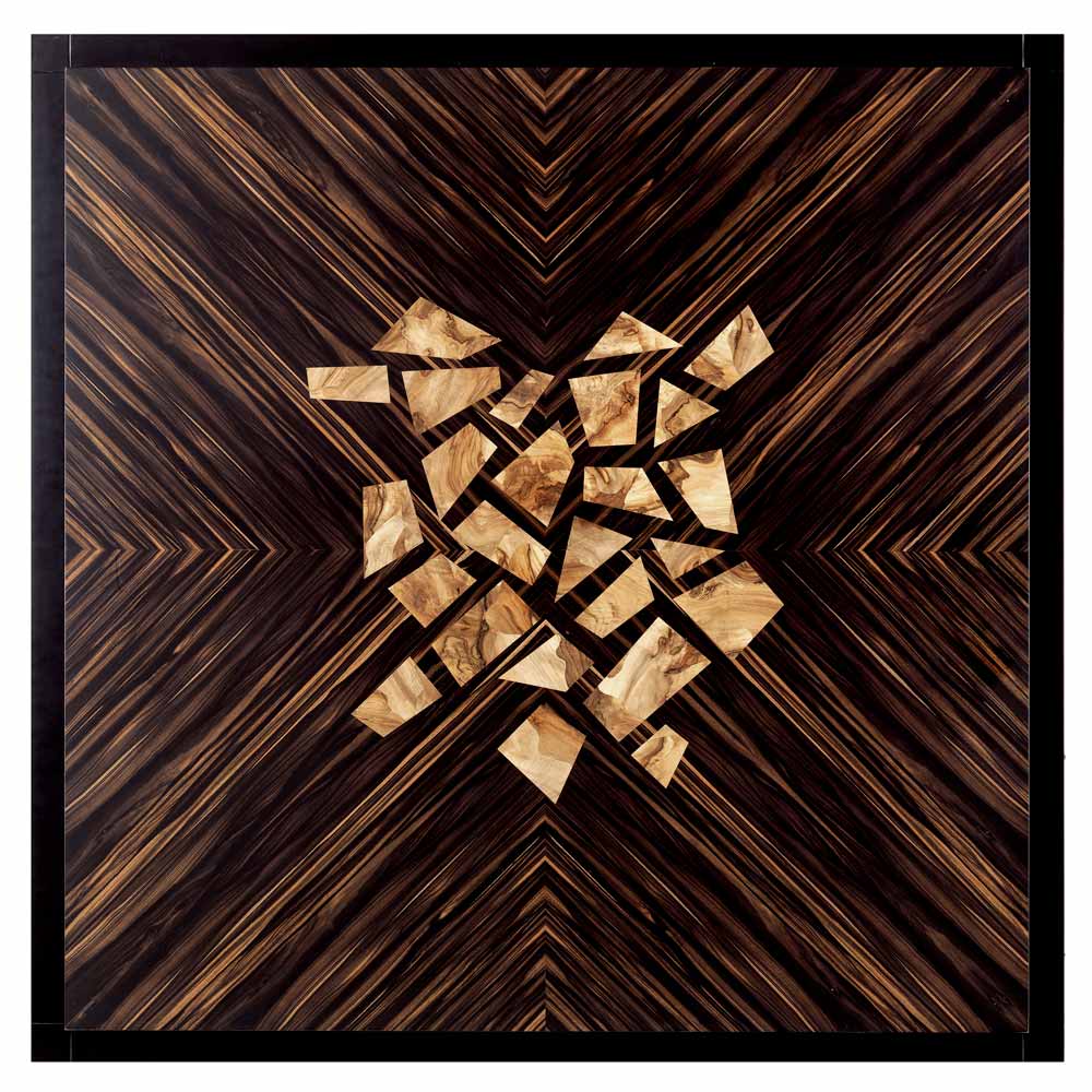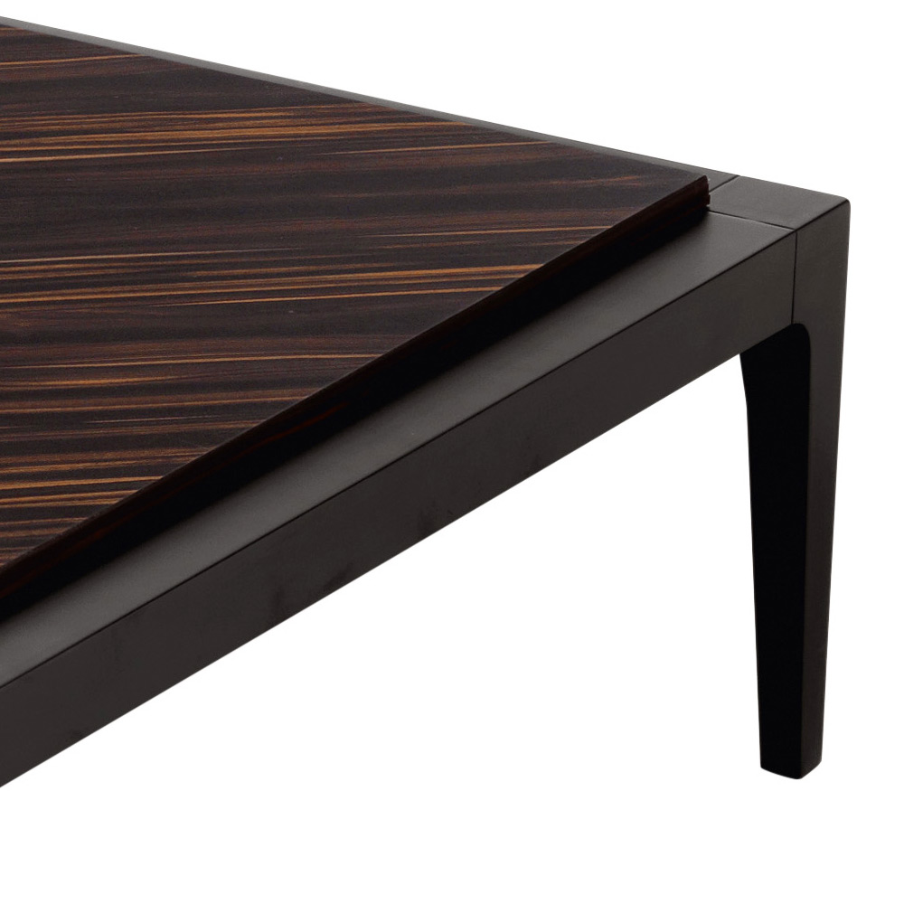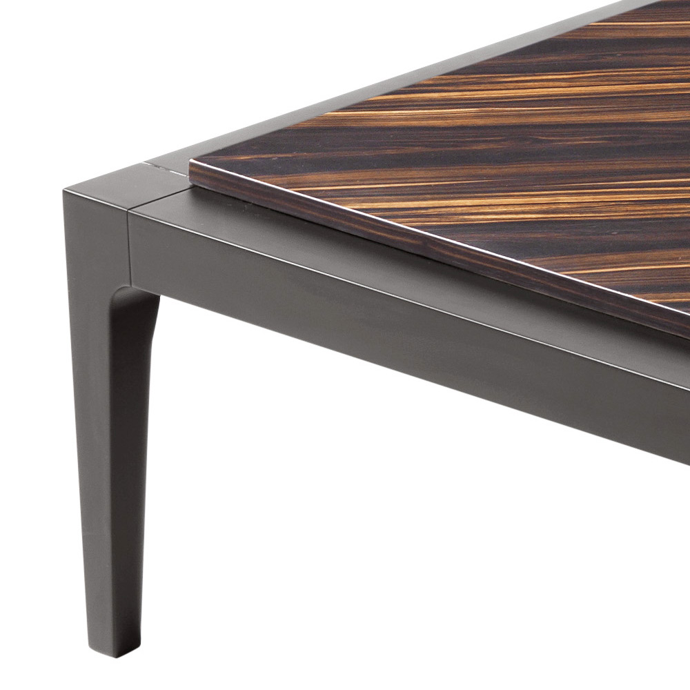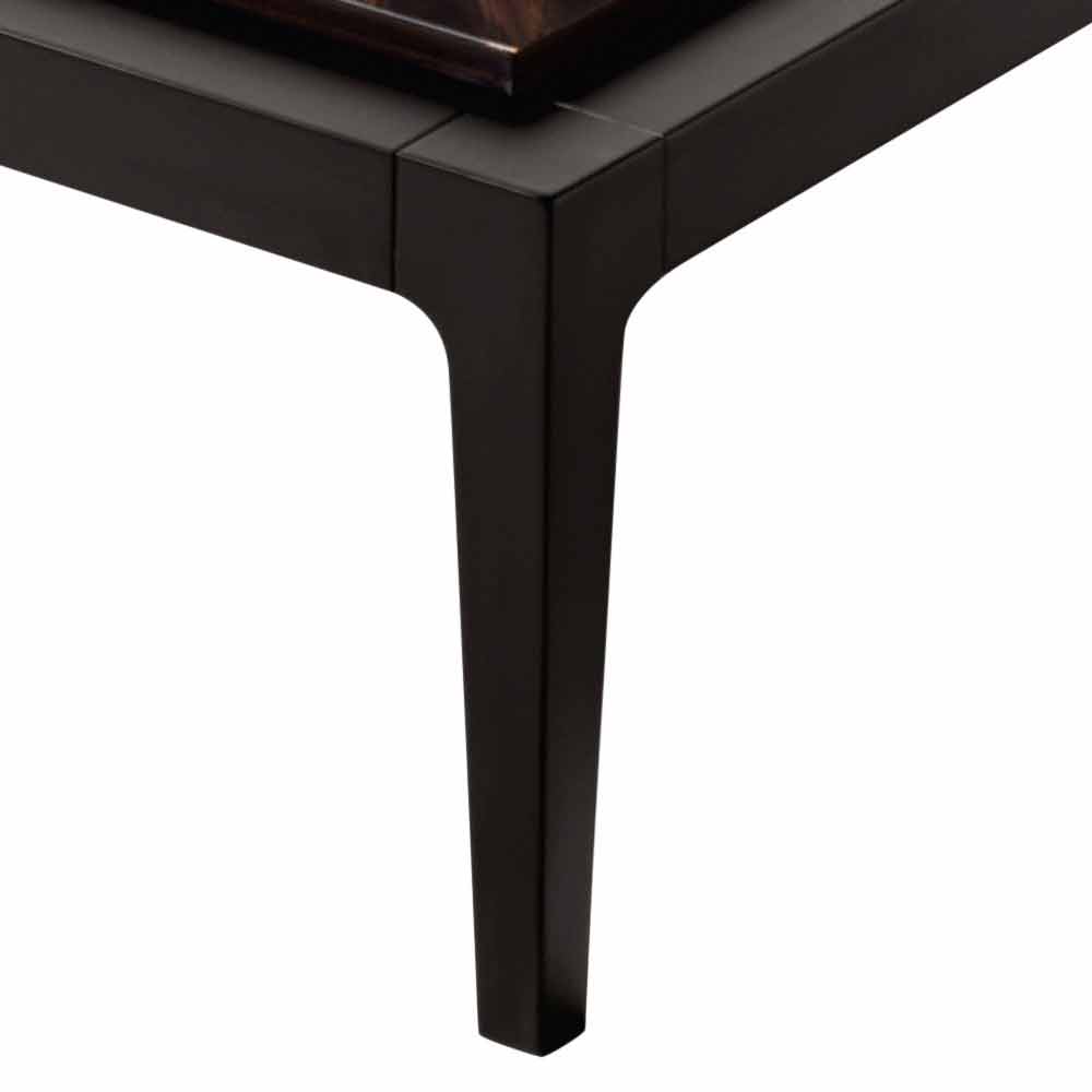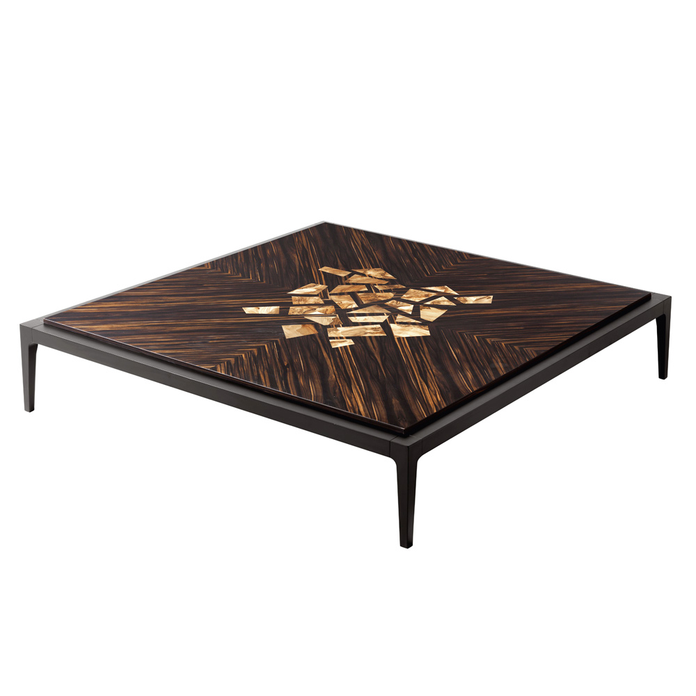 Zarafa kvadrat sofabord har en solid linden træ struktur, den finerede top med ebony finer og koriander indsatser i valnød briarwood.