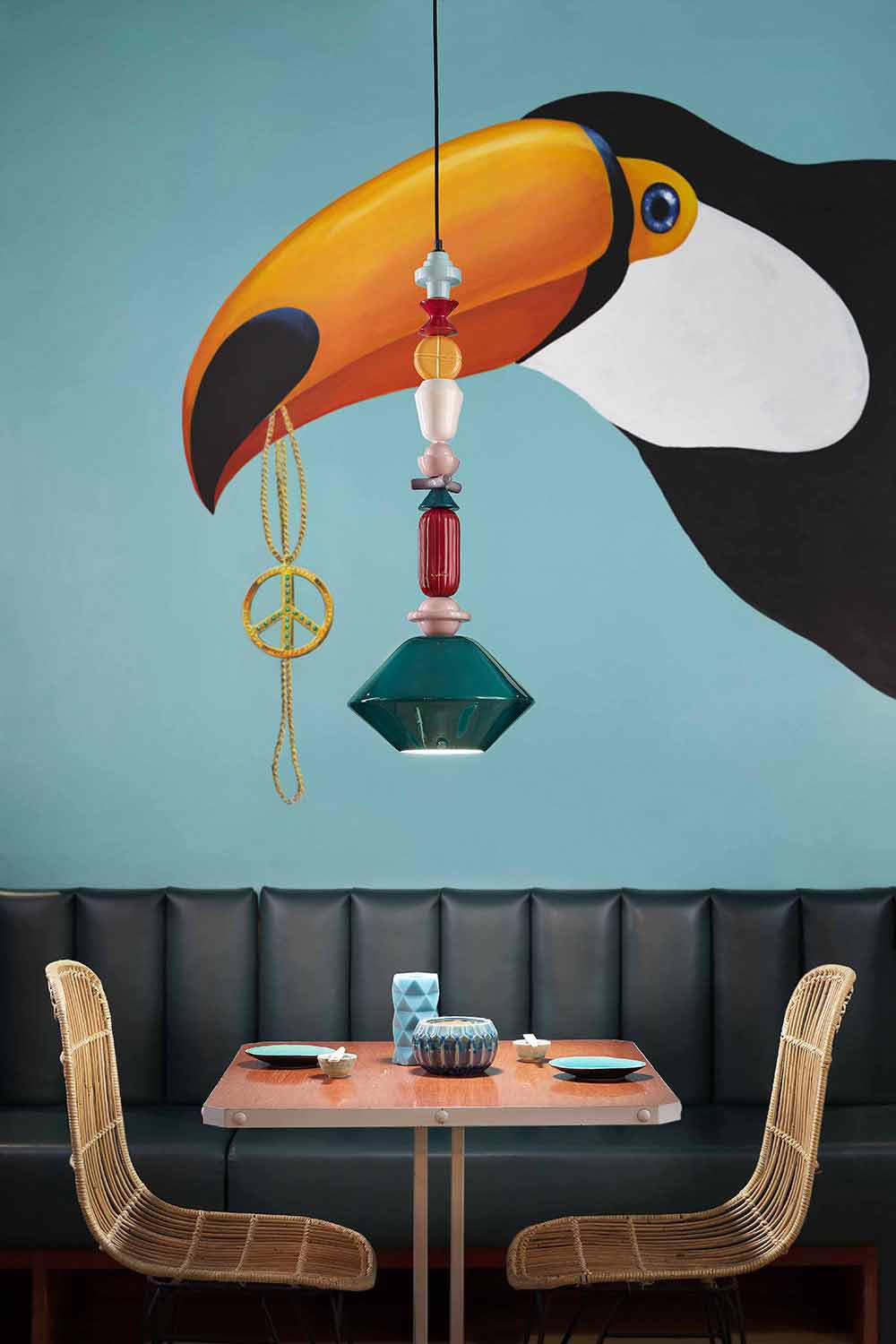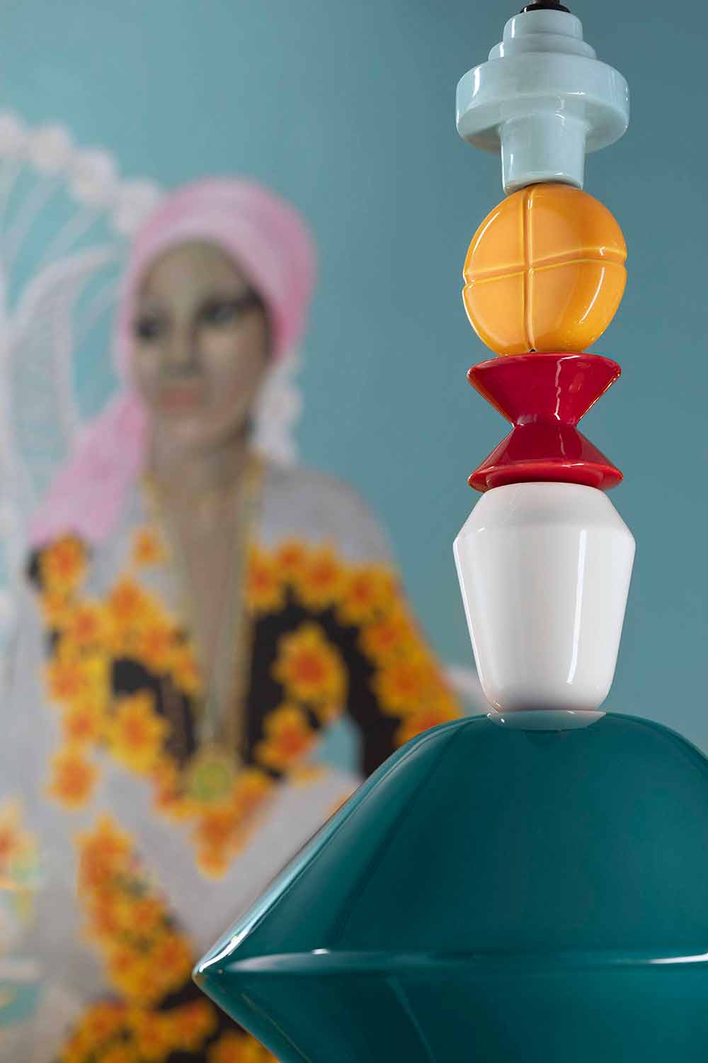 Lariat er en unik og speciel gengivelse af de flerfarvede keramiske elementer, der følger hinanden lodret op til den centrale diffusor.