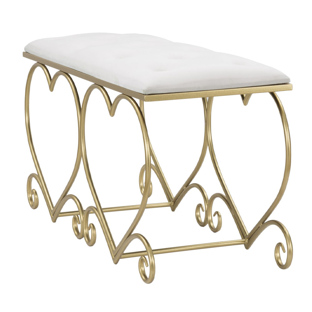 Moderne bænk i jern med gylden finish med sæde polstret i svamp og
