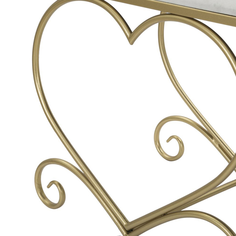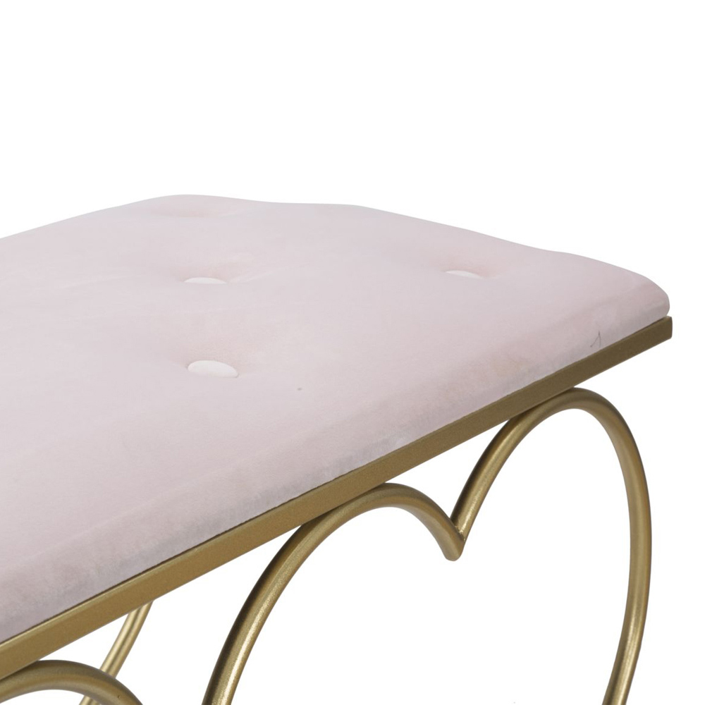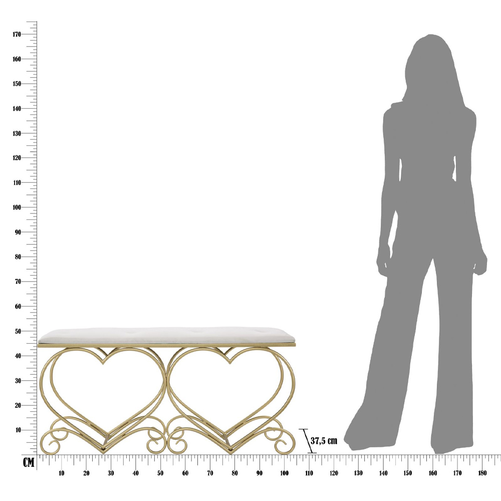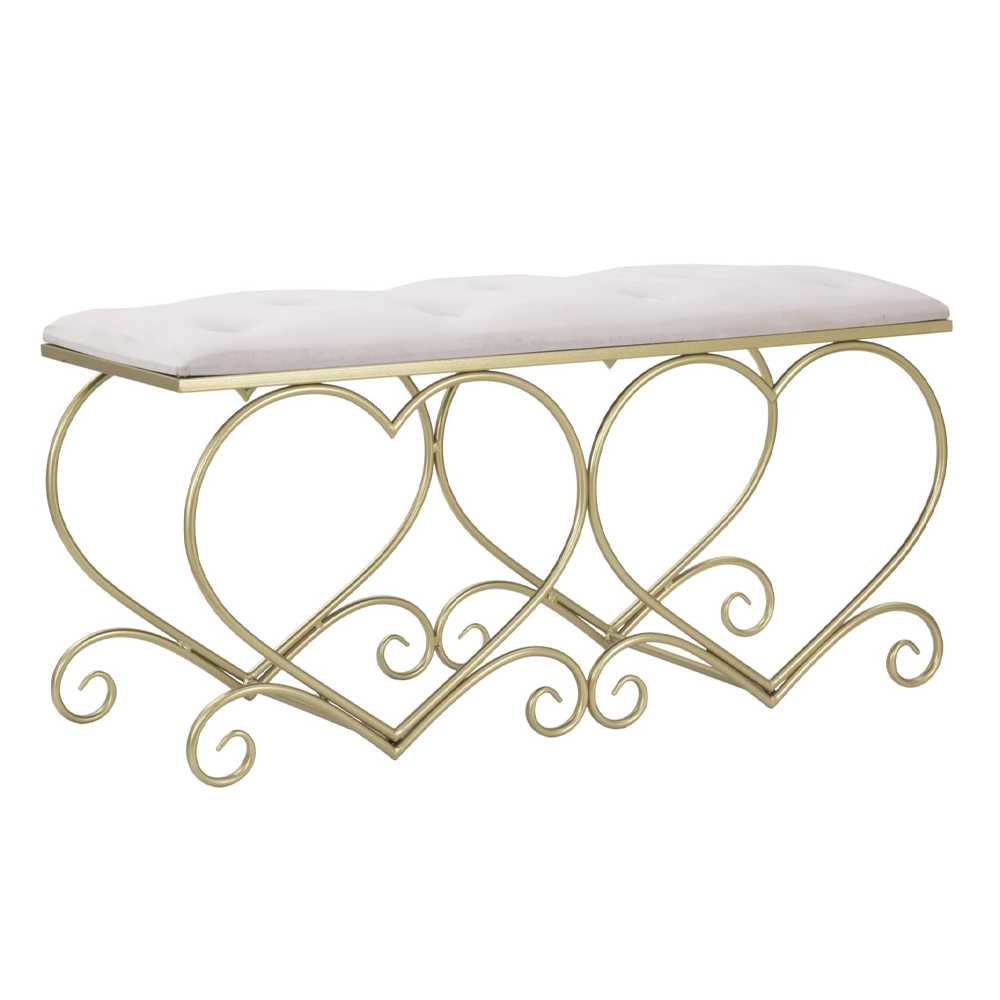 Moderne bænk med jernstruktur i guldfinish og stofsæde.