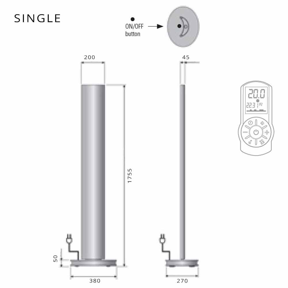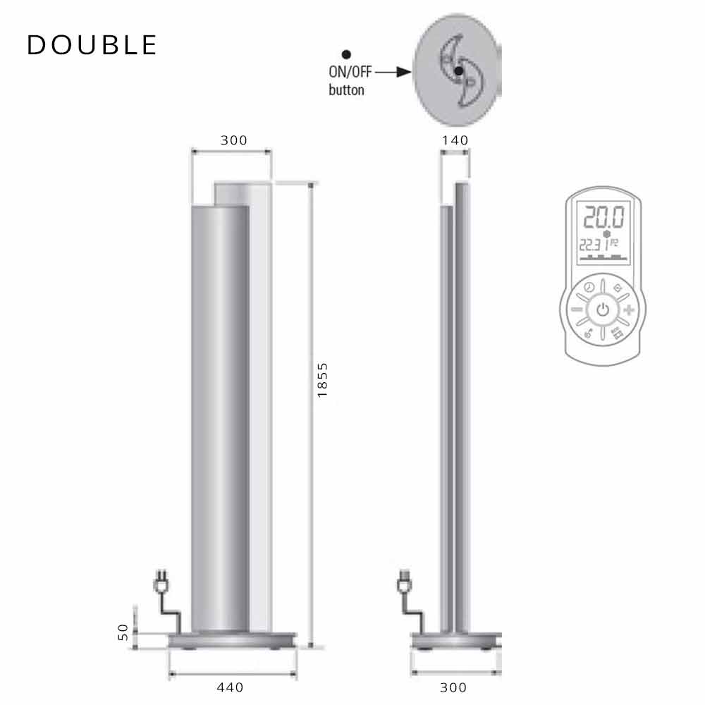 Denne varmelegeme har 250 watt til den enkelte version og 500 watt til den dobbelte version, leveret med standard fjernbetjening til justering af LED-lys og termostaten med daglig / ugentlig programmering. 1,5 meter kabel med schuko-stik. 230 volt enfaset strømforsyning.
