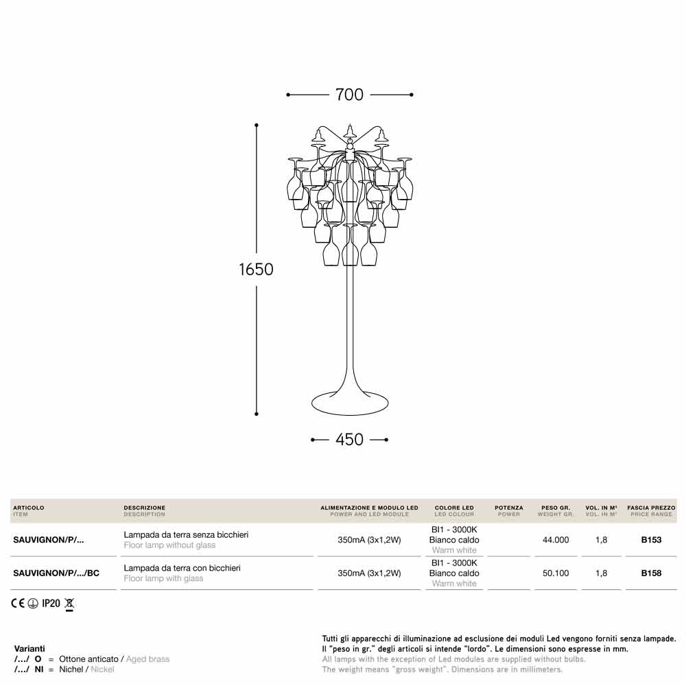 Standerlampe moderne design i rustfrit stål cm diameter 37xH80 Fanny