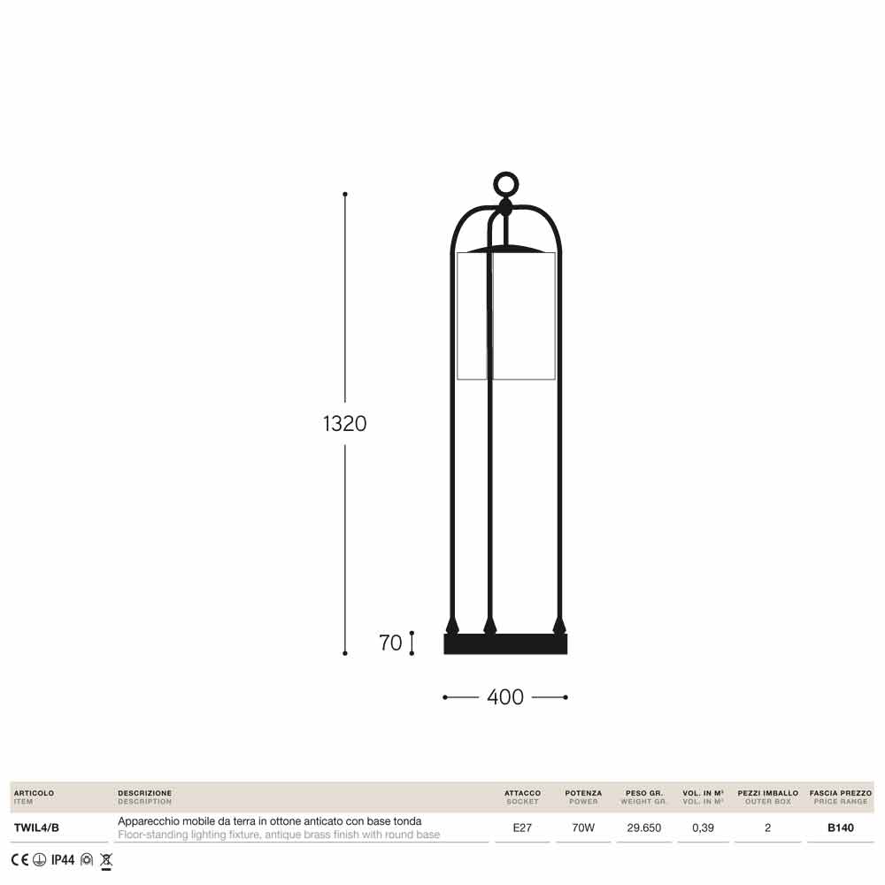 Gulv lampe til udendørs messing Pitosforo