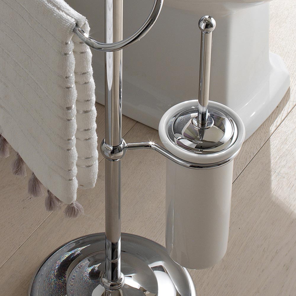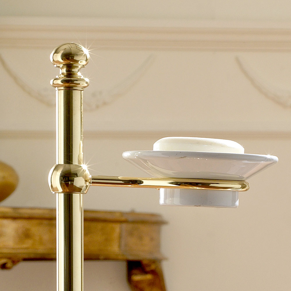 Gulvhåndklædeholder med sæbeskål i messing og keramik produceret i Italien, Rouen.