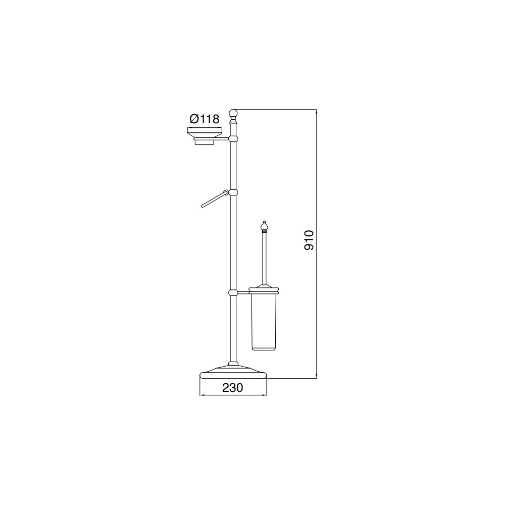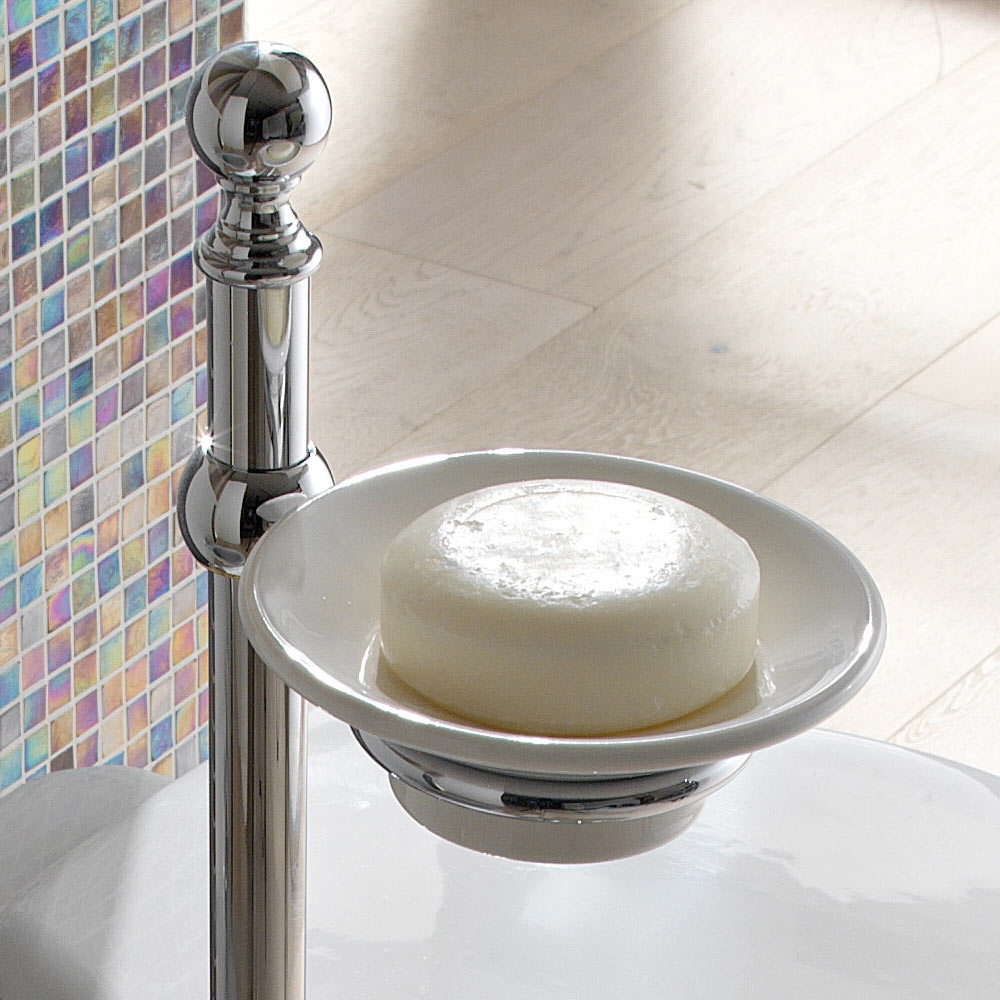 Håndlavet i Italien med materialer af høj kvalitet. Strukturen er lavet af messing, sæbeskålen er keramisk. En praktisk toiletbørsteholder, også i keramik, fås som ekstraudstyr.
