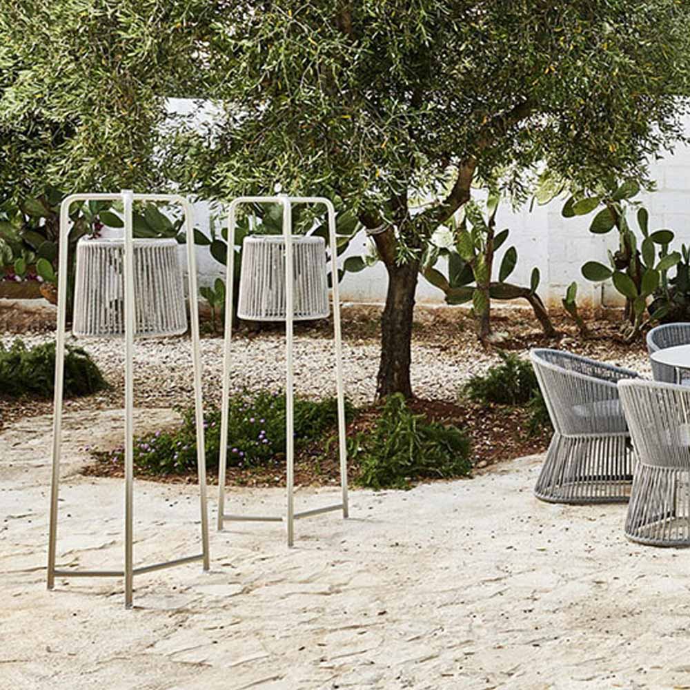 Havelampe udelukkende fremstillet i Italien med pulverlakeret aluminiumsstruktur i silkegrå finish og en håndlavet vævning i perlefarvet syntetisk fiber komplet med LED lys . De vidunderlige finish, der foreslås, er ideelle til at skabe en suggestiv atmosfære og til at fremhæve bestemte områder af huset, revolutionere udseendet af det omgivende miljø og berige dets æstetik.