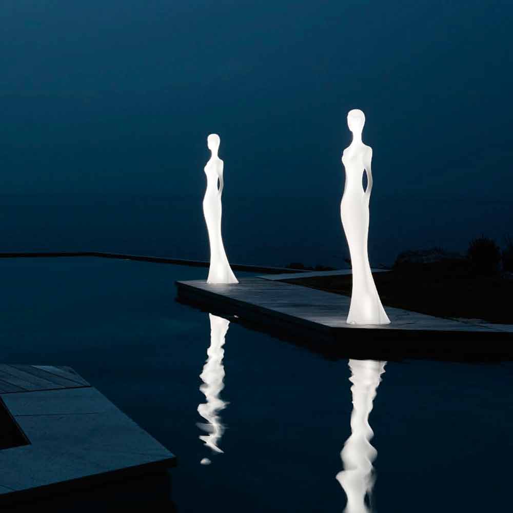 Helt nyt, når hun sætter fødderne på jorden, leger Penelope med det gamle på samme tid. Det er inspireret af klassiske statuer, et ornament af villaer og haver, men fortynder deres former i en stilisering, der smager af både den jakobske og den etruskiske. Antropomorf, men overdimensioneret (over to meter høj), rolig og ironisk, lineær men overraskende, det er faktisk en koncentration af referencer og forslag. Eller hvis du foretrækker det, er det bare en smuk lampe.