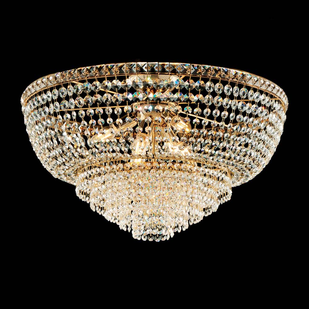 Den polerede guldfinish fremhæver materialernes glans og giver loftslampen en overdådig karakter, ideel til elegante stuer, spisestuer, soveværelser, store entréer og eksklusive kontormiljøer . Et belysningselement, der udtrykker al kvaliteten af italiensk håndværk og kombinerer ædle materialer og omhyggeligt håndværk i et tidløst design.