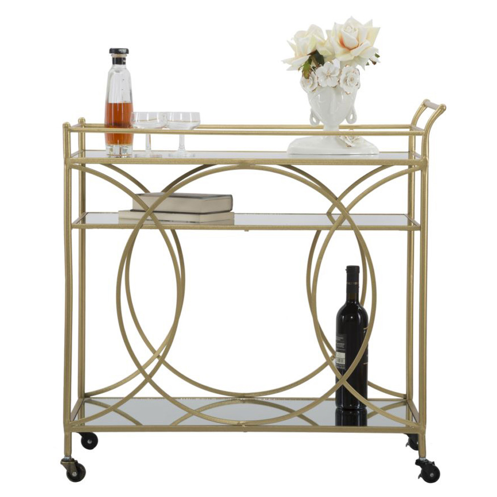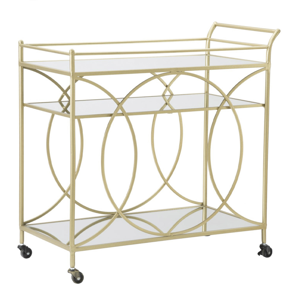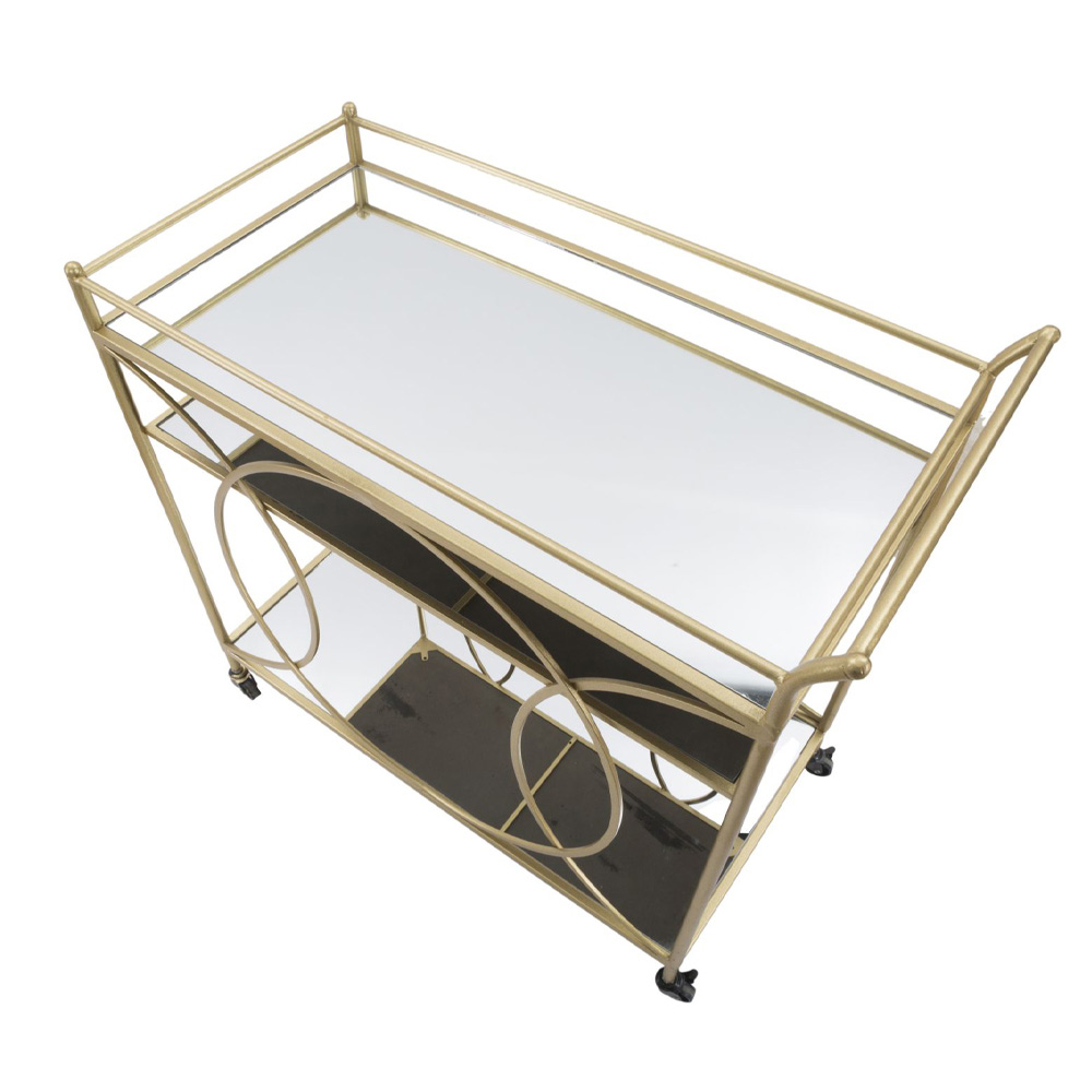 Madvogn til forgyldt jern med 3 spejlede hylder komplet med hjul.