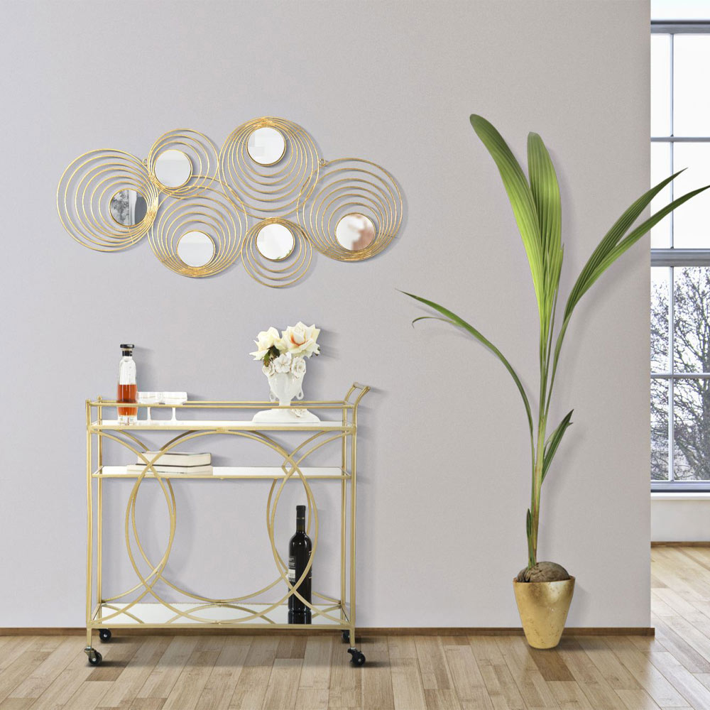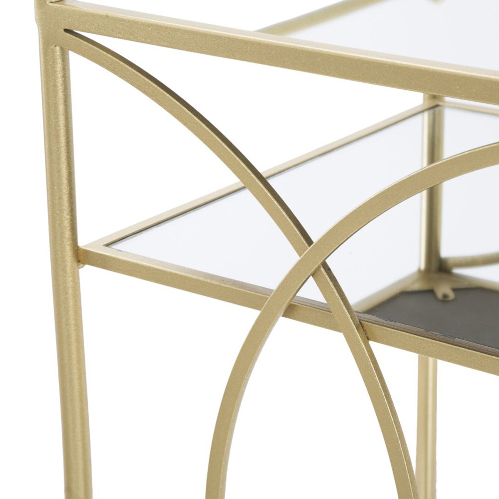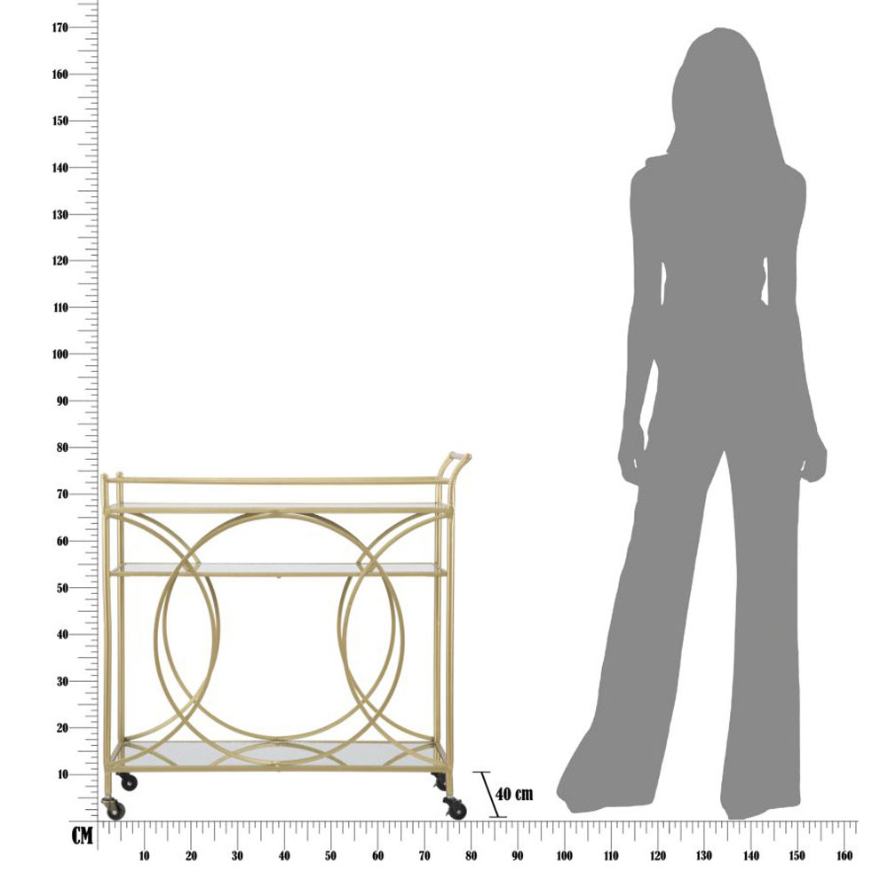 Madvogn lavet af jern i guld med 3 spejlede hylder komplet med hjul. Et supplement, hvis design understreges af enkle og alsidige linjer og former, der gør det særligt alsidigt og moderne . Dens stærke side er den funktionelle side, der gør den perfekt til hjemmearealer som f.eks. Spisestuer eller moderne køkkener, hvor det er praktisk og på samme tid perfekt at færdiggøre møblerne med et finurligt og fængende præg takket være den særlige konstruktion af strukturen, der er karakteriseret ved brug af forskellige geometriske former.