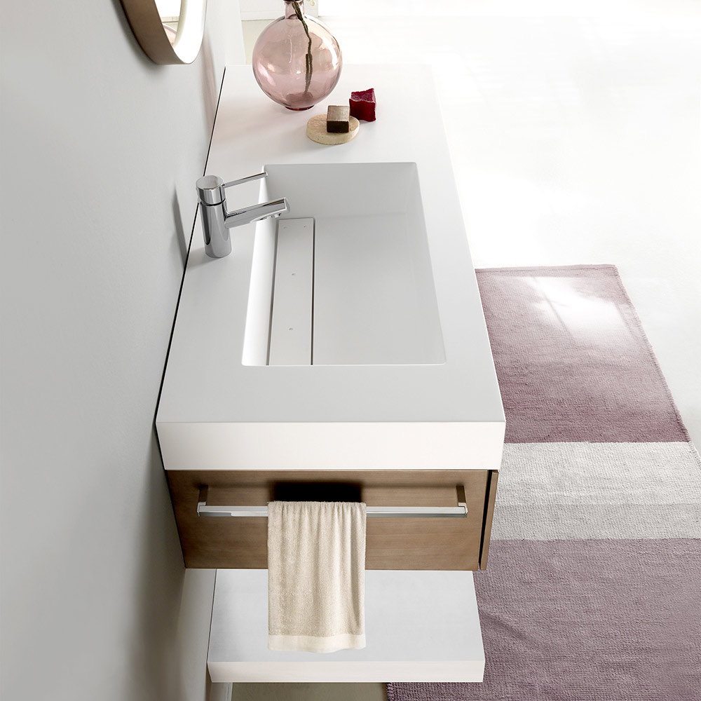 integreret håndvask med fri dræning, dækket af en raffineret plade af samme materiale.