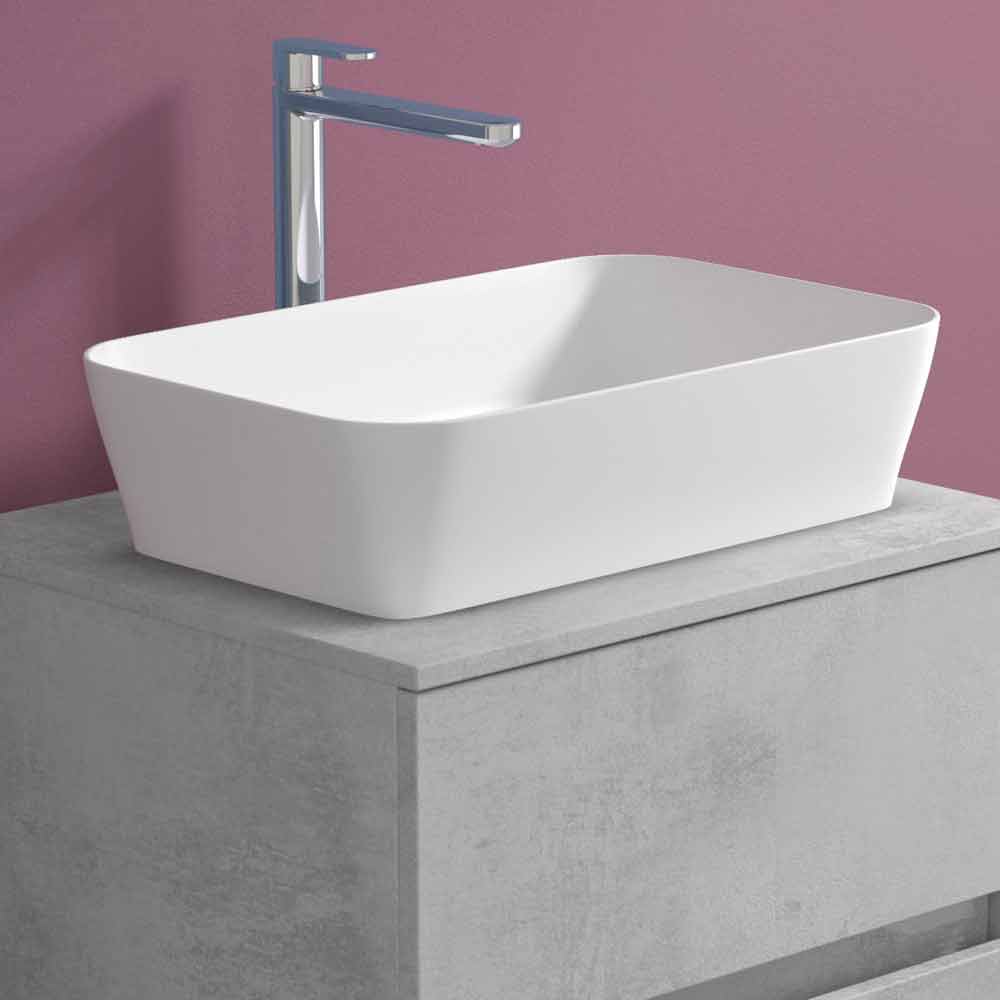 Den rektangulære køkkenbordet håndvask er fremstillet af Solid mat, en uigennemsigtig hvid mineralsk harpiks, og sluttede i uigennemsigtig gelcoat, hvilket gør produktet vandtæt.
