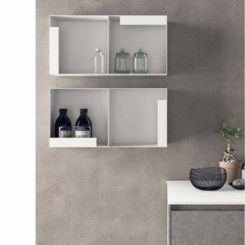 Minimal og moderne badeværelseskomposition, ophængt design med hylder, fremstillet i Italien.