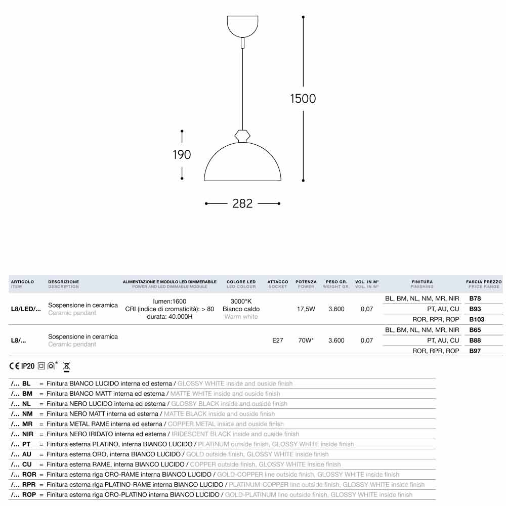 I Lustri 8 fås i forskellige overflader og med standard E27-pærestik eller LED-lys.