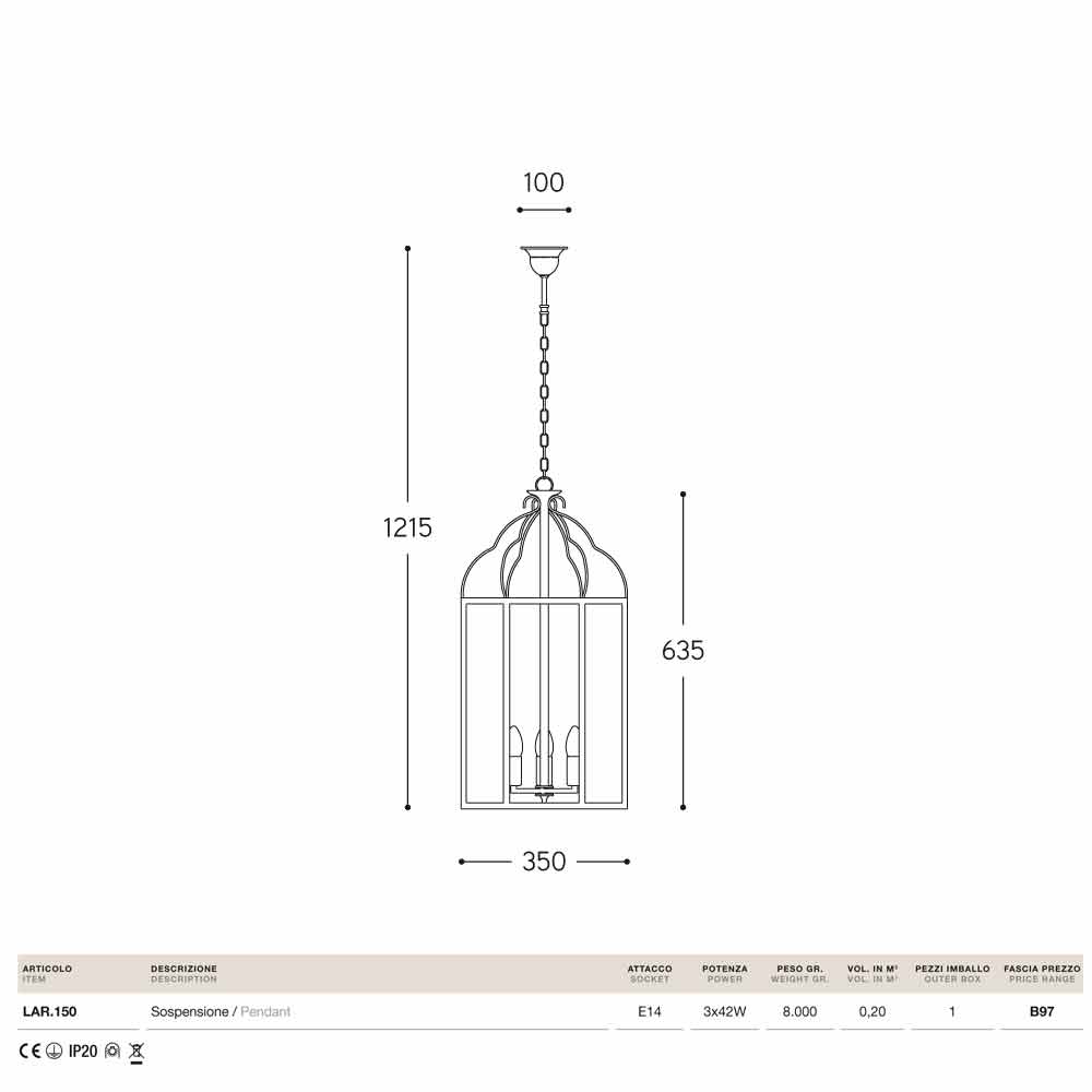 Lamp design pendel antik jern Jean Il Fanale