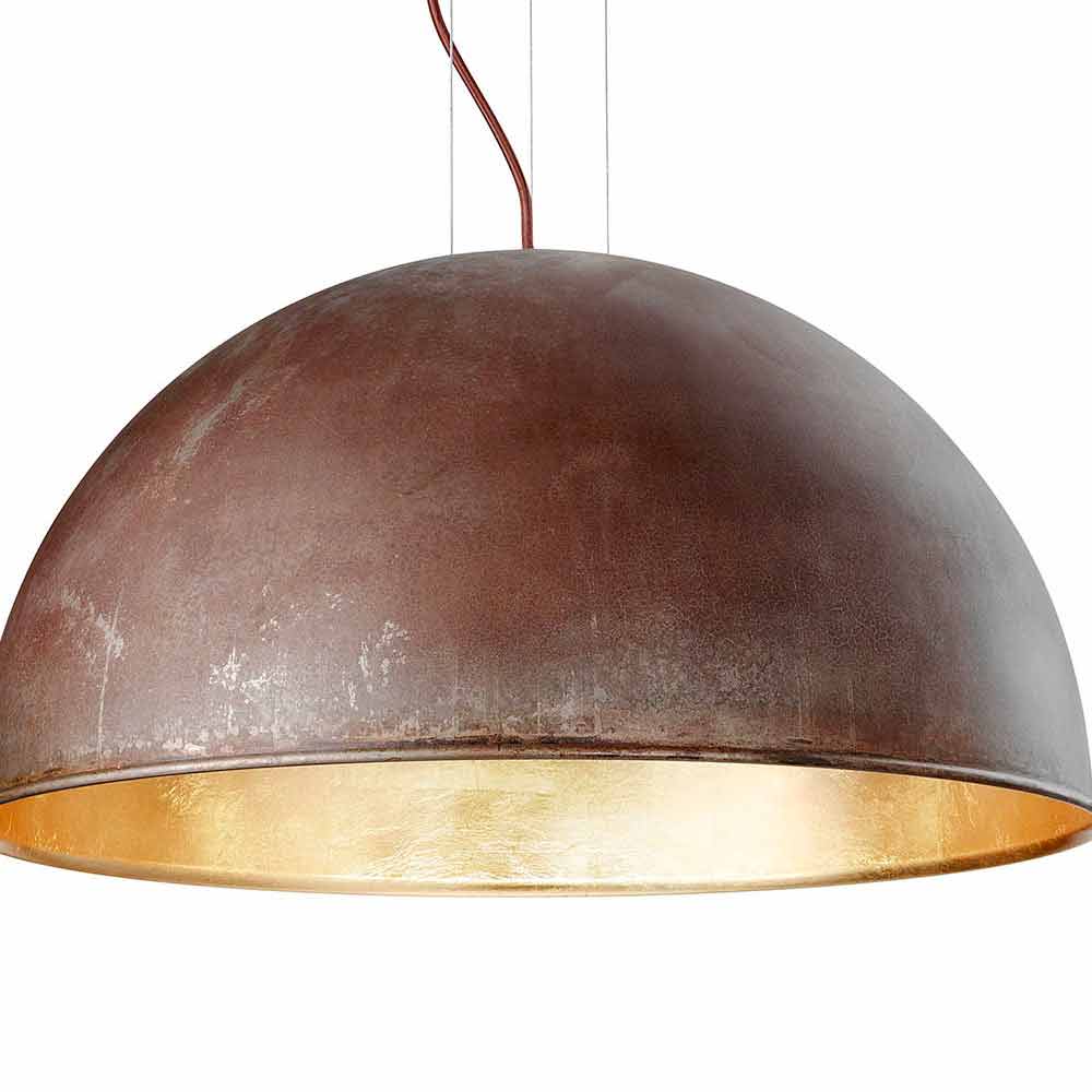 Grafen fed og den perfekte halv kugle karakterisere denne samling af lamper, der er designet som en hyldest til den astronomiske revolution. Kontrasten mellem ydersiden af messing eller jern og interiøret lavet af bladguld, sølv eller kobber blad, giver dette produkt en æstetisk af stor visuel effekt. Fås med ekstern messing eller jern i 30,40,60 cm diameter og med ekstern jern i diameter 80 cm.