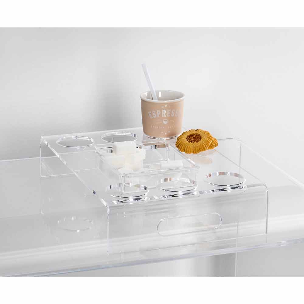 2 transparente plexiglasbakker til kaffe til 6 eller 8 glas, fremstillet i Italien design.