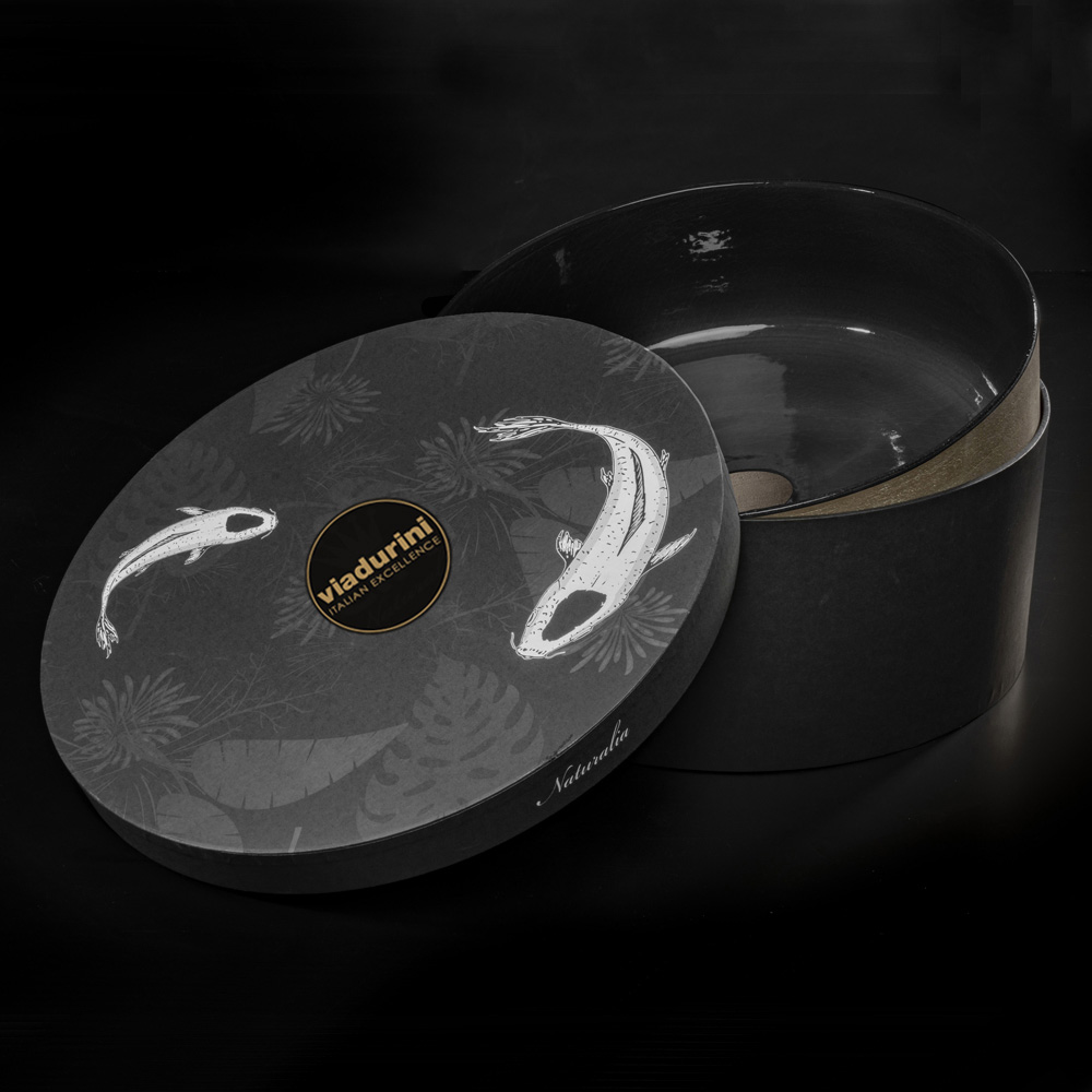 Bordvask med rund form i ildfast ler håndlavet i Italien og drejet i hånden med tredje ild madlavning. Dens æstetik er kendetegnet ved den perfekte kombination af det naturlige voksede og vandtætte ydre med en mere rustik stil og det blanke og glaserede interiør i sort finish, farven par excellence af elegance og raffinement forbundet med mystiske atmosfærer. Hvert element i håndvasken er håndlavet for at give liv til en eksklusiv indretningsløsning, af høj værdi og af uovertruffen kvalitet.