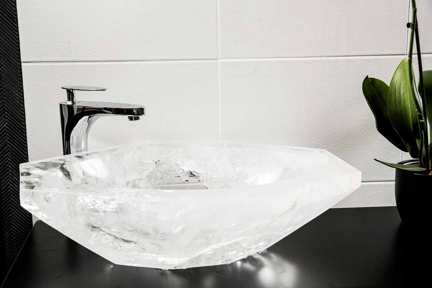 Design håndlavet køkkenvask i bjergkrystal til en stilfuld badeværelsesindretning.