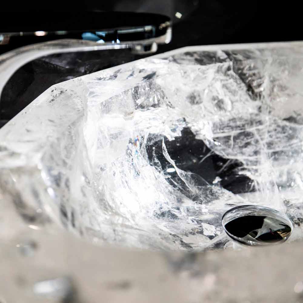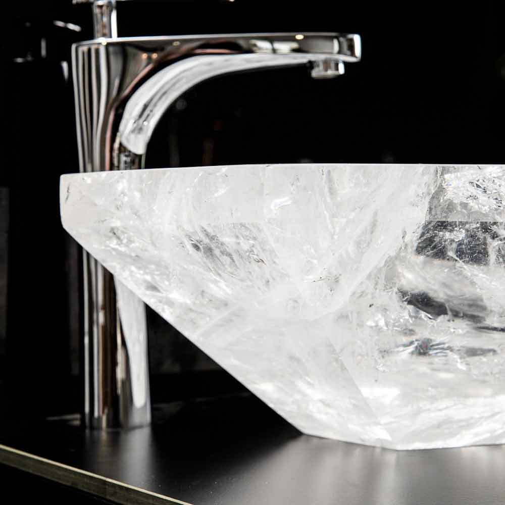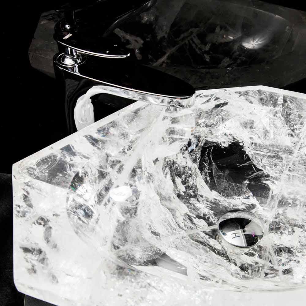 Falvaterra er en fabelagtig og original håndlavet håndvask lavet af et enkelt stykke bjergkrystal. Finishen er gennemsigtig.