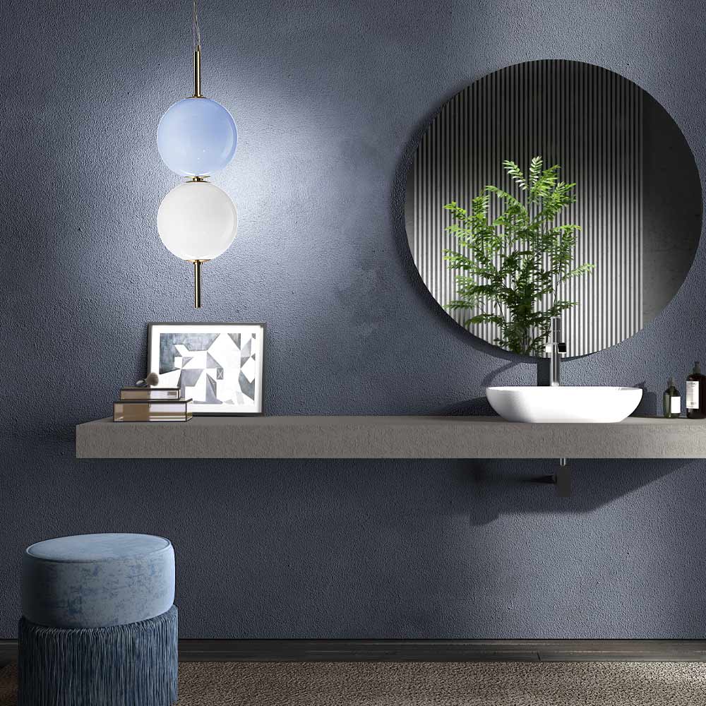 - tofarvede kugler (hvidt kappeglas, blåt kappeglas);