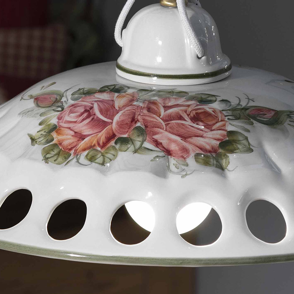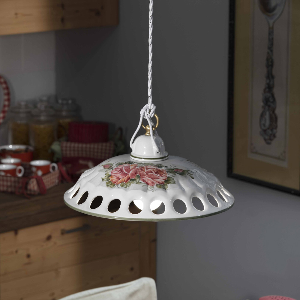 Pendellampe i metal og håndlavet keramik med tape, lavet i Italien af Ferroluce.