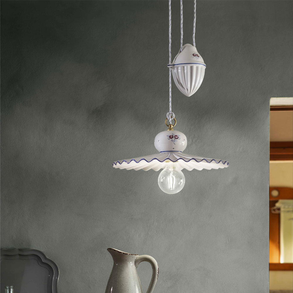 Håndlavet ophængt skydelampe i metal og håndmalet keramik fremstillet i Italien af Ferroluce.