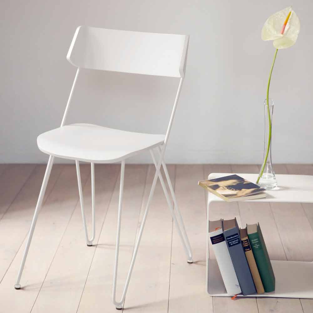 En innovativ idé omend i sin enkelhed. Det, der kendetegner æstetikken, er det særlige ved de rørformede ben, der skaber fornemmelsen af et skub opad ved forsigtigt at støtte sædet og skabe illusionen af et ryglæn, der ser ud til at flyde. Den slanke ramme og det væsentlige i formene gør den til en ekstremt alsidig stol, der er i stand til at berige indretningen af sine rum på en sober og diskret måde og samtidig skabe en perfekt harmoni af stilarter og en varm og indbydende atmosfære.
