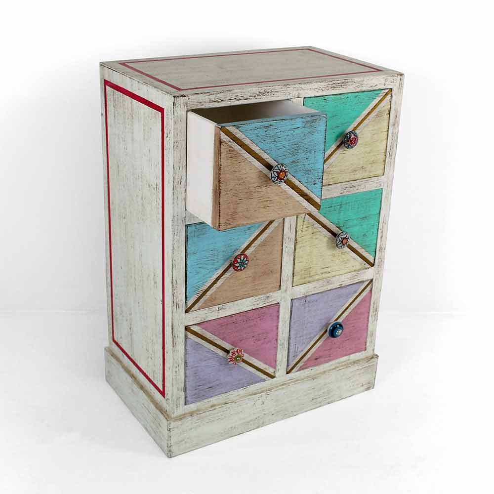 Håndlavet kommode af træ med skuffer malet med geometrisk mønster, fint Made in Italy-vare.