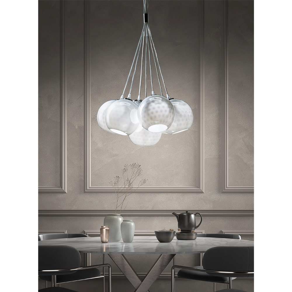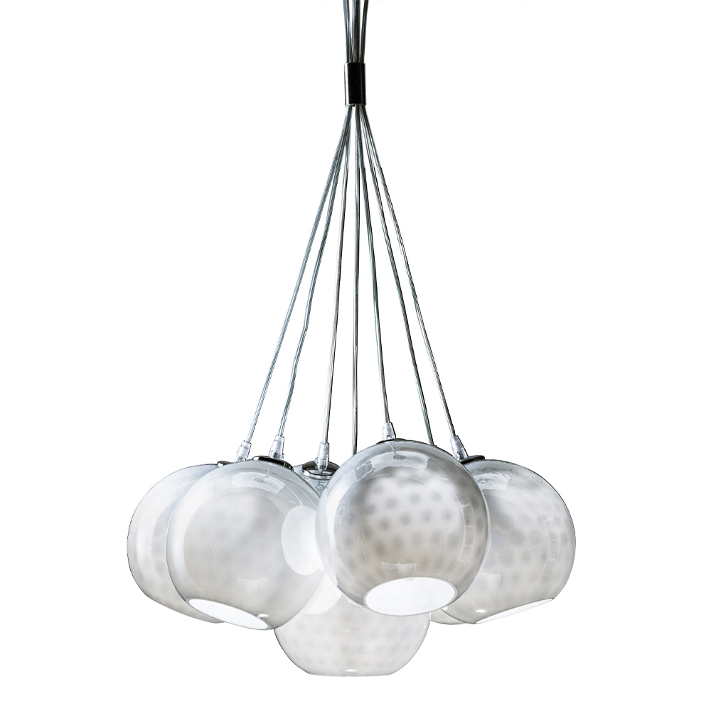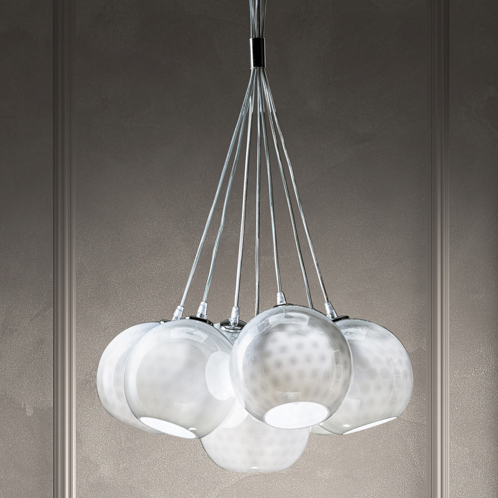 7 lys lysekrone i håndblæst glas i Venedig med Balloton teknik.