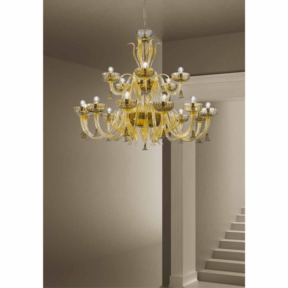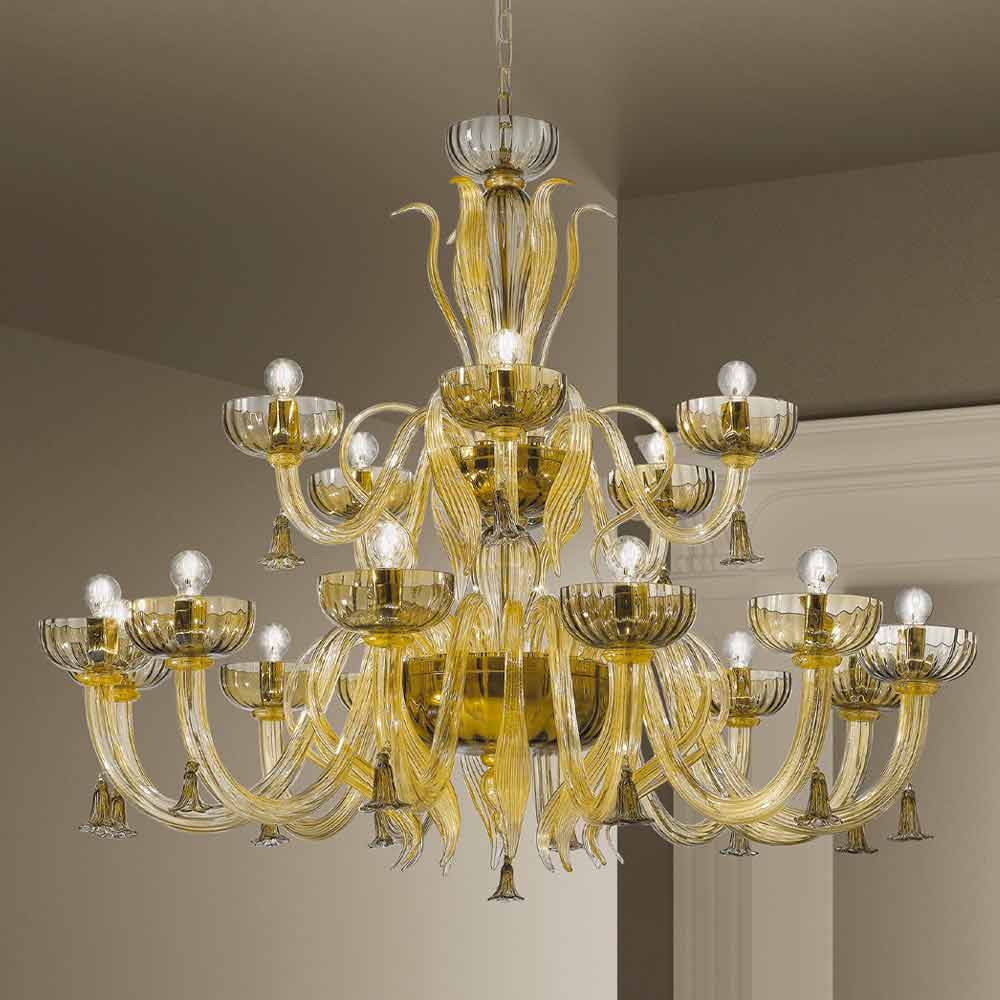 18 lysekrone i venetiansk glas og 24k guld, håndlavet i Italien.