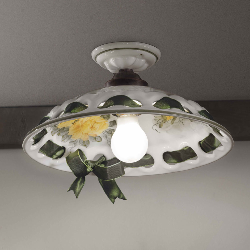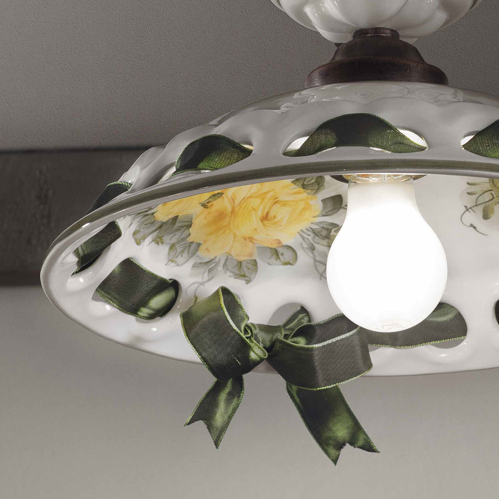 Metal og håndlavet keramisk loftslampe med tape, lavet i Italien af Ferroluce.