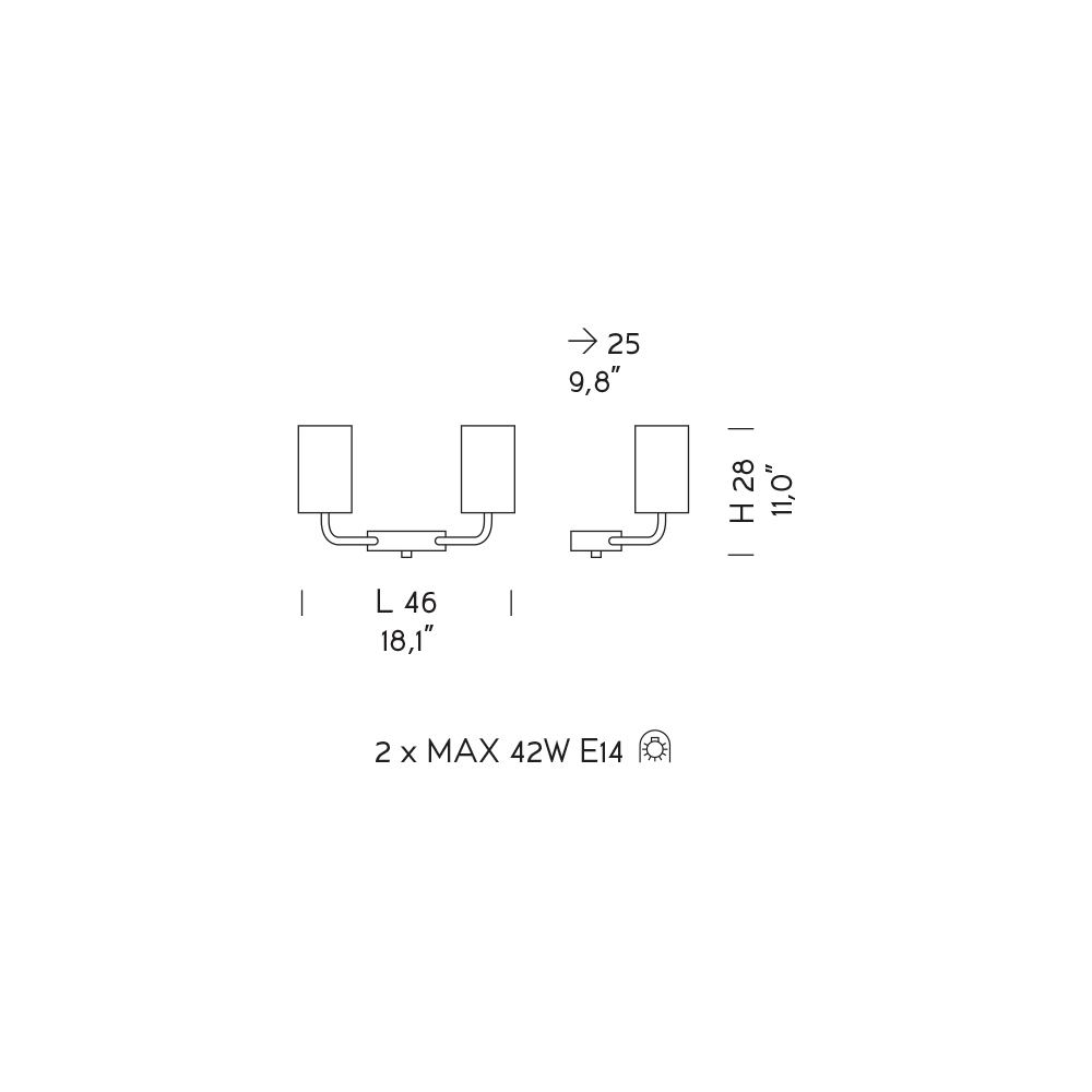 Pærer (medfølger ikke) : 2 x MAX 42W E14