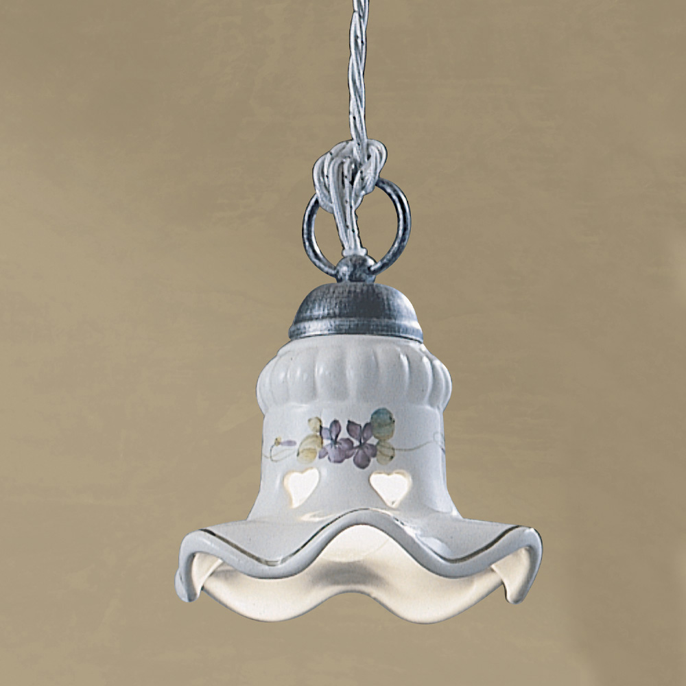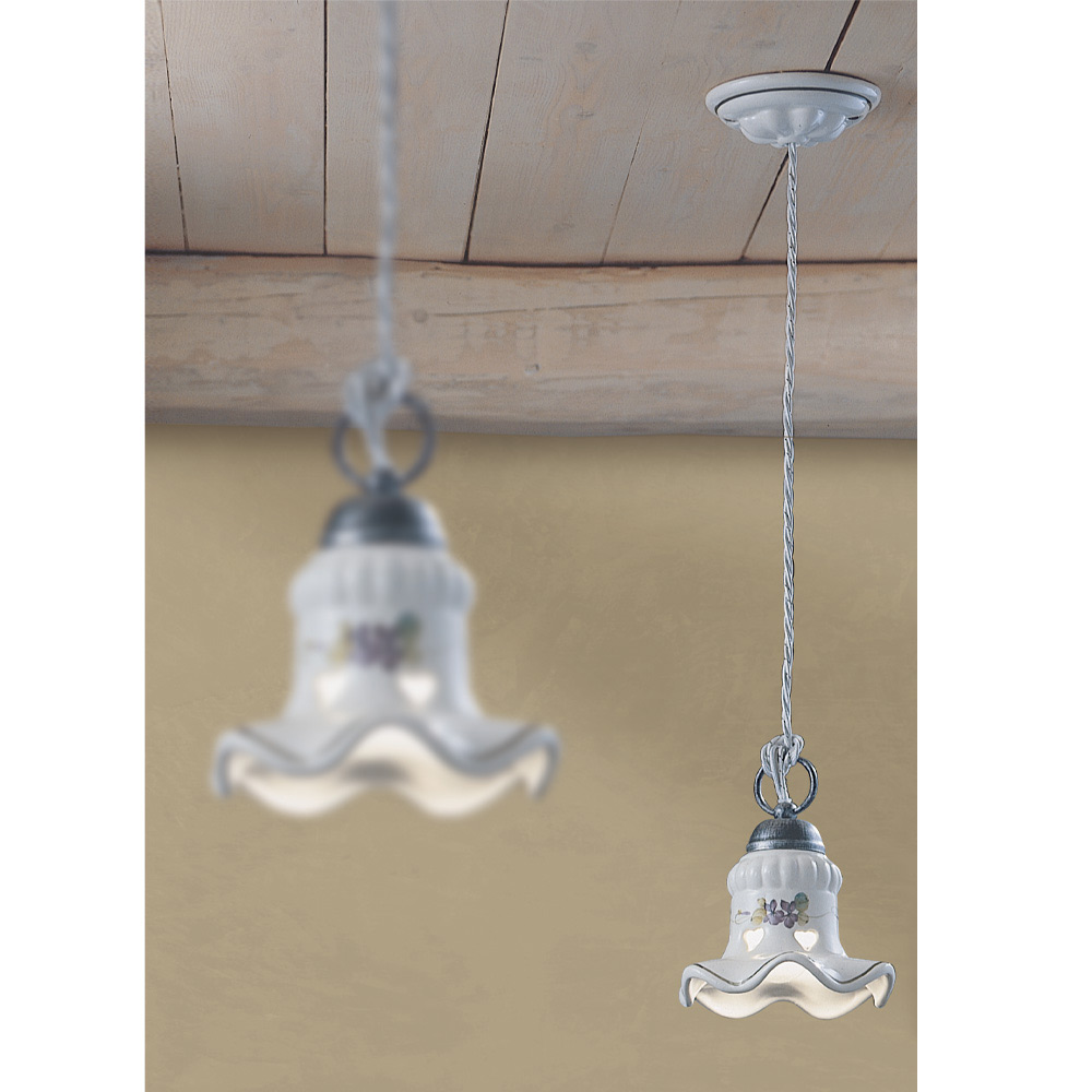Hånddekoreret pendel i jern og keramik, lavet i Italien af Ferroluce.