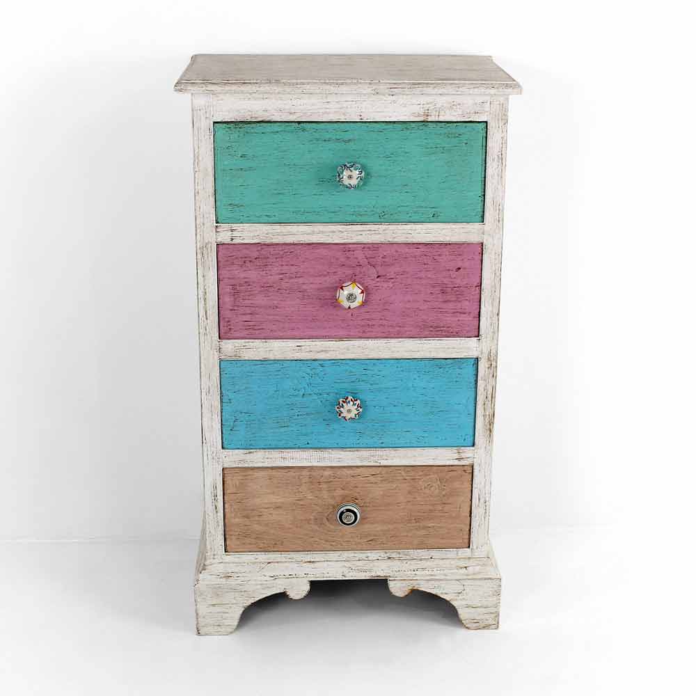 Håndlavet kommode i massivt træ med 4 farvede skuffer, fremstillet i Italien i høj kvalitet.