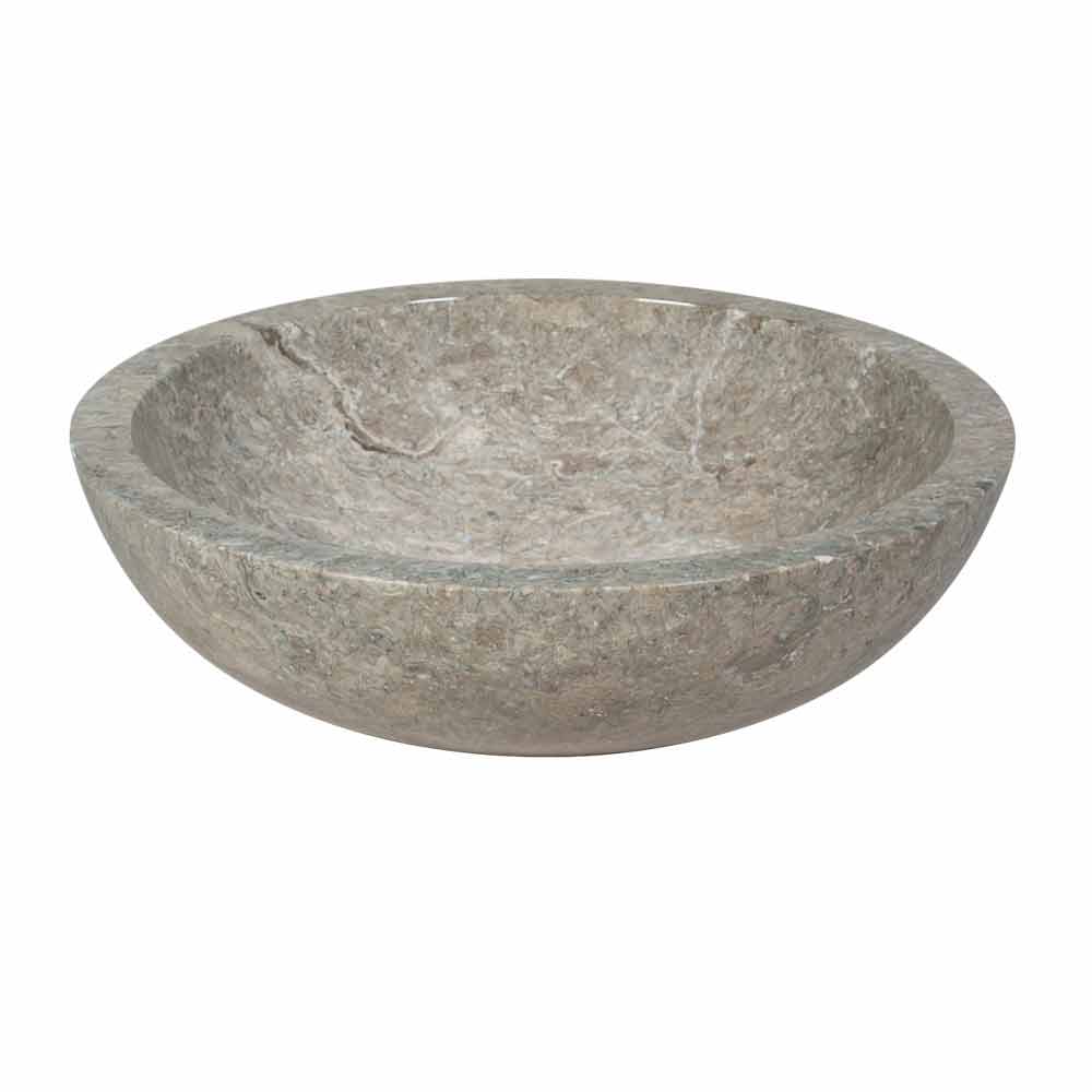 fra rund håndvask i grå sten med ekstern poleret model Nusa
