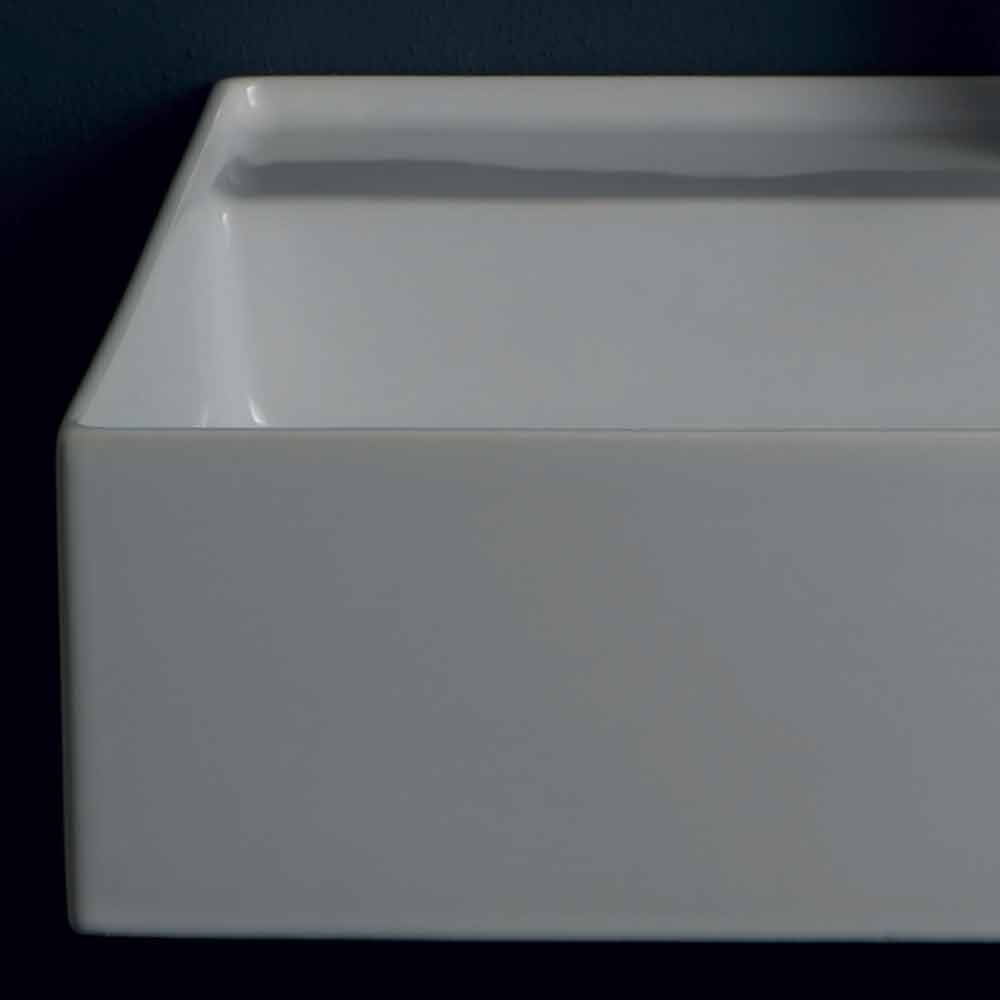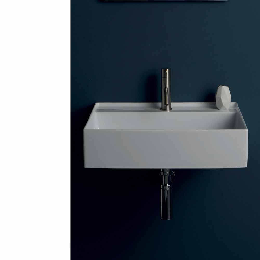 Sun moderne design keramisk væghængt håndvask 60x45 cm, fremstillet i Italien