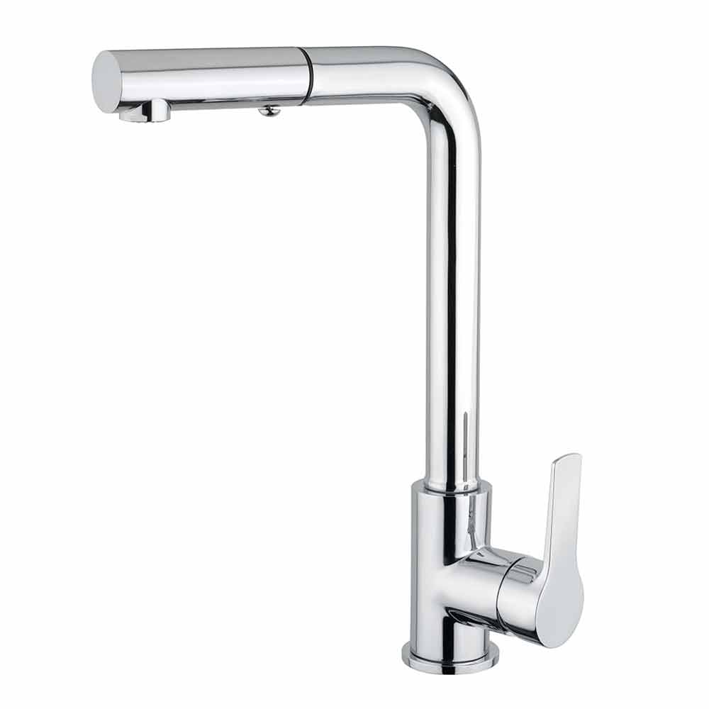 forkromet messing. Takket være den justerbare tud og det 2-jet udtrækkelige håndbruser kombineres