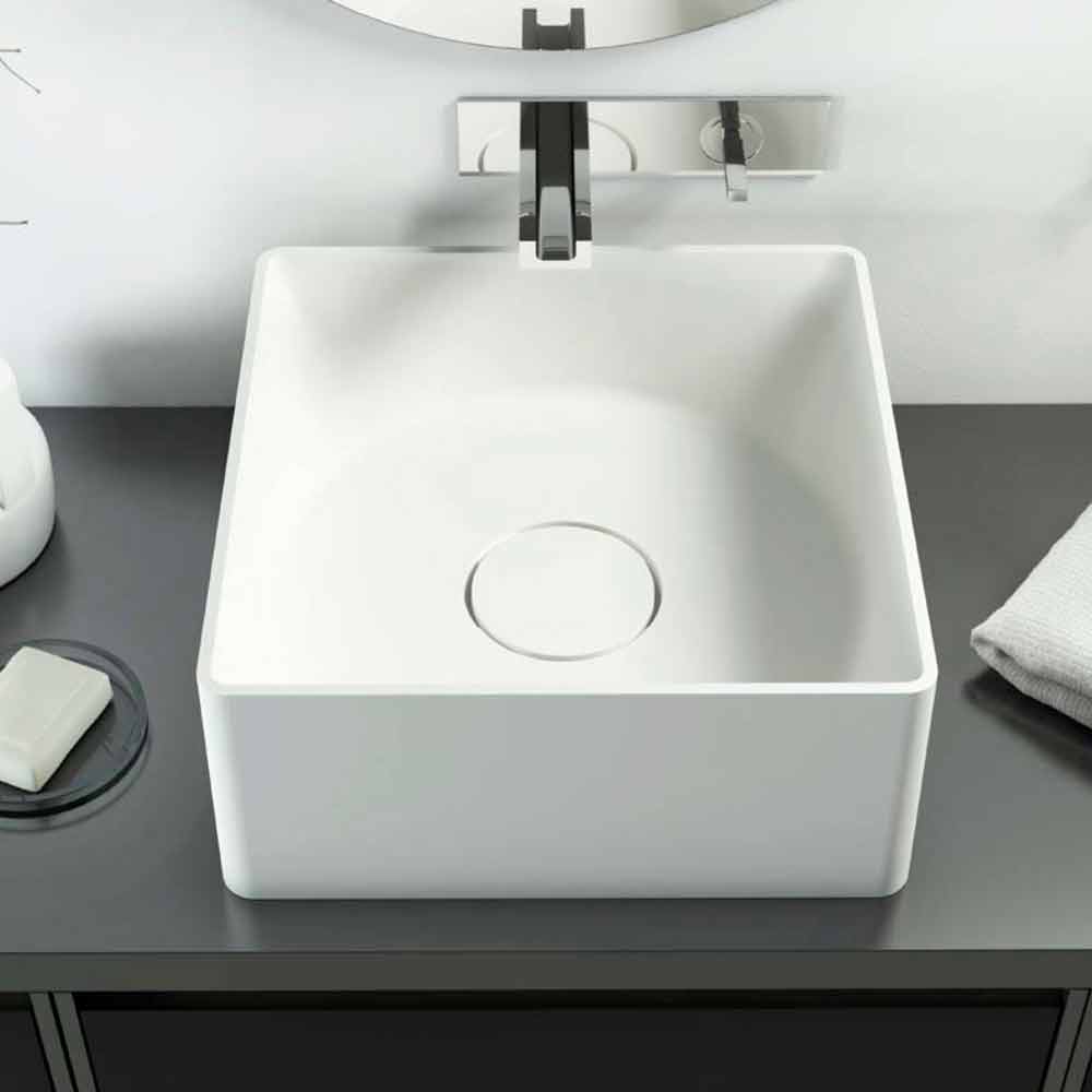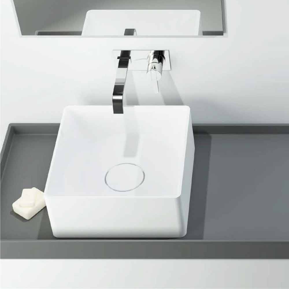 Forino er en firkantet bordvask med moderne og stilfuld design; i stand til at integrere og finde en balance i enhver type badeværelse.