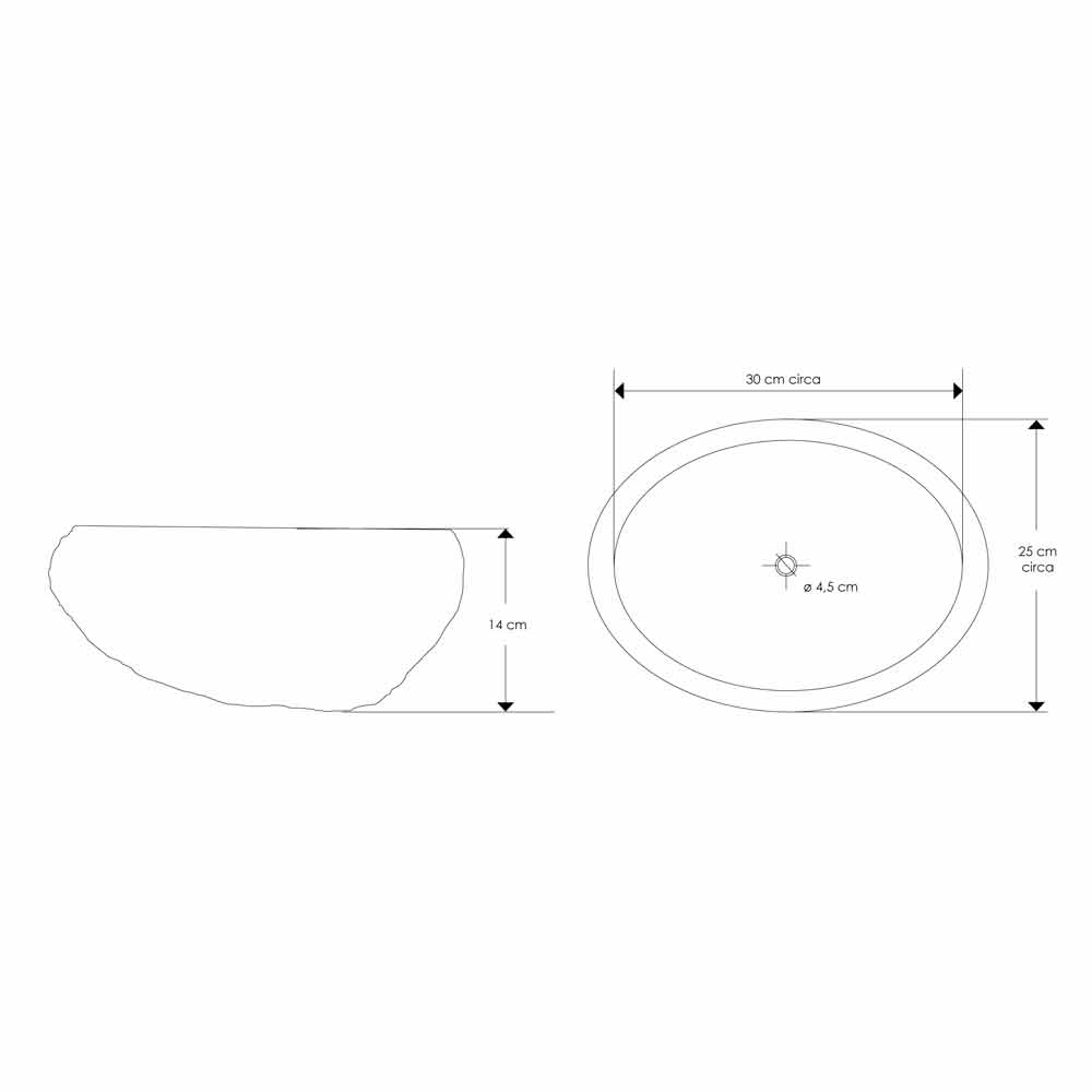 Håndlavede flodstensvaske. Farver spænder fra grå med hasselnød nuancer til antracit med ravfarvede refleksioner. Poleret indvendigt efterlades det bevidst "naturen" udvendigt. Hvert stykke i samlingen er unikt, det fotograferede er et eksempel, der ikke kan gentages i serier.