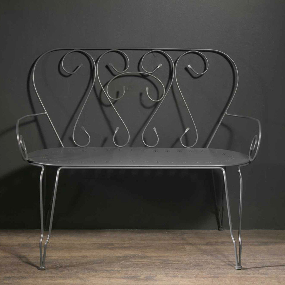 Denne malede metalbænk er en ægte designjuvel, perfekt til at tilføje et strejf af elegance og charme til ethvert udendørs rum. Med sine bløde linjer og romantiske drejninger i ryglænet er denne bænk ikke bare et møbel, men et ægte symbol på stil og komfort.