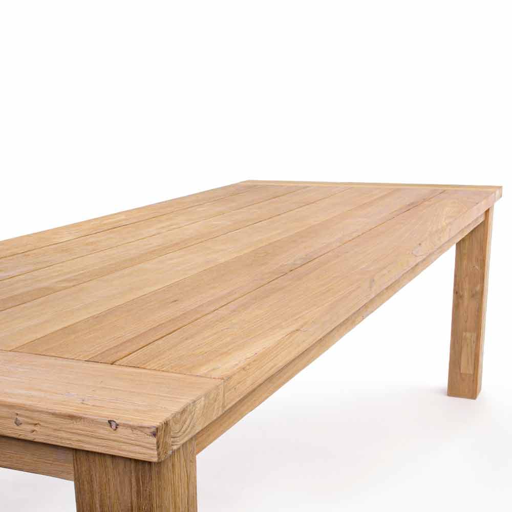 Rektangulært designhavebord lavet af naturligt genanvendt teaktræ til 8 personer.