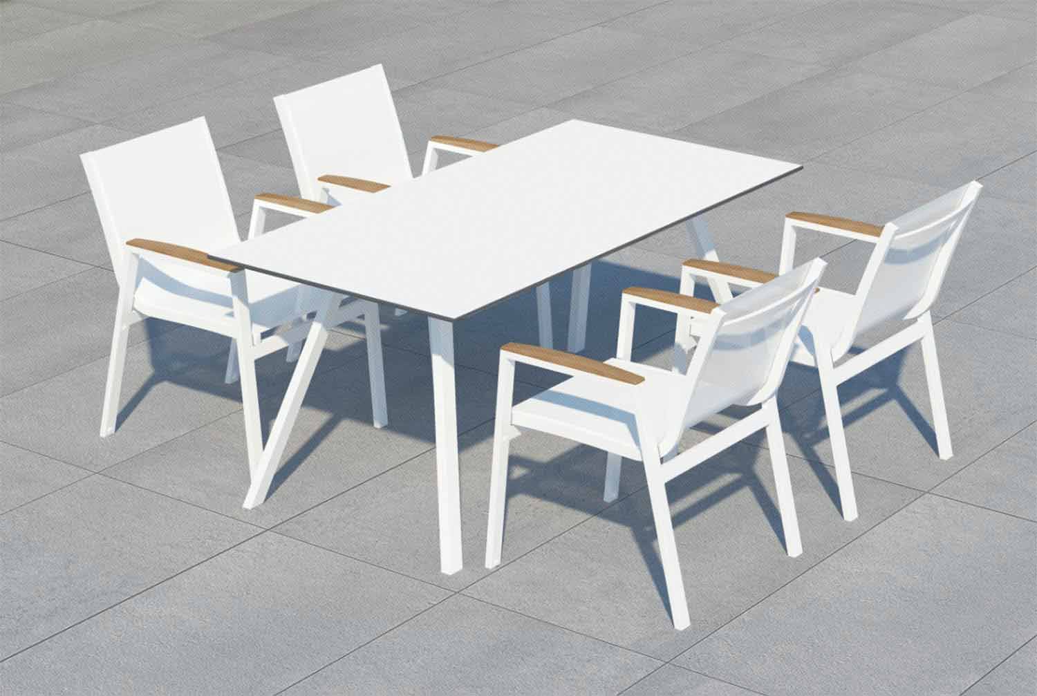Havebord i moderne design, struktur i aluminium og lamineret HPL, fås i forskellige farver og størrelser.