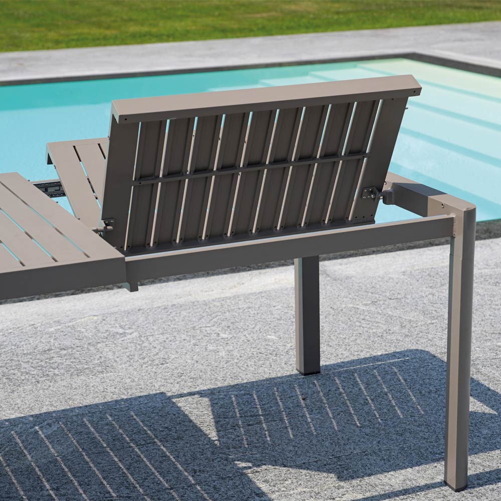 Udtrækkeligt udendørsbord til 240 cm lavet af aluminium med et moderne design.