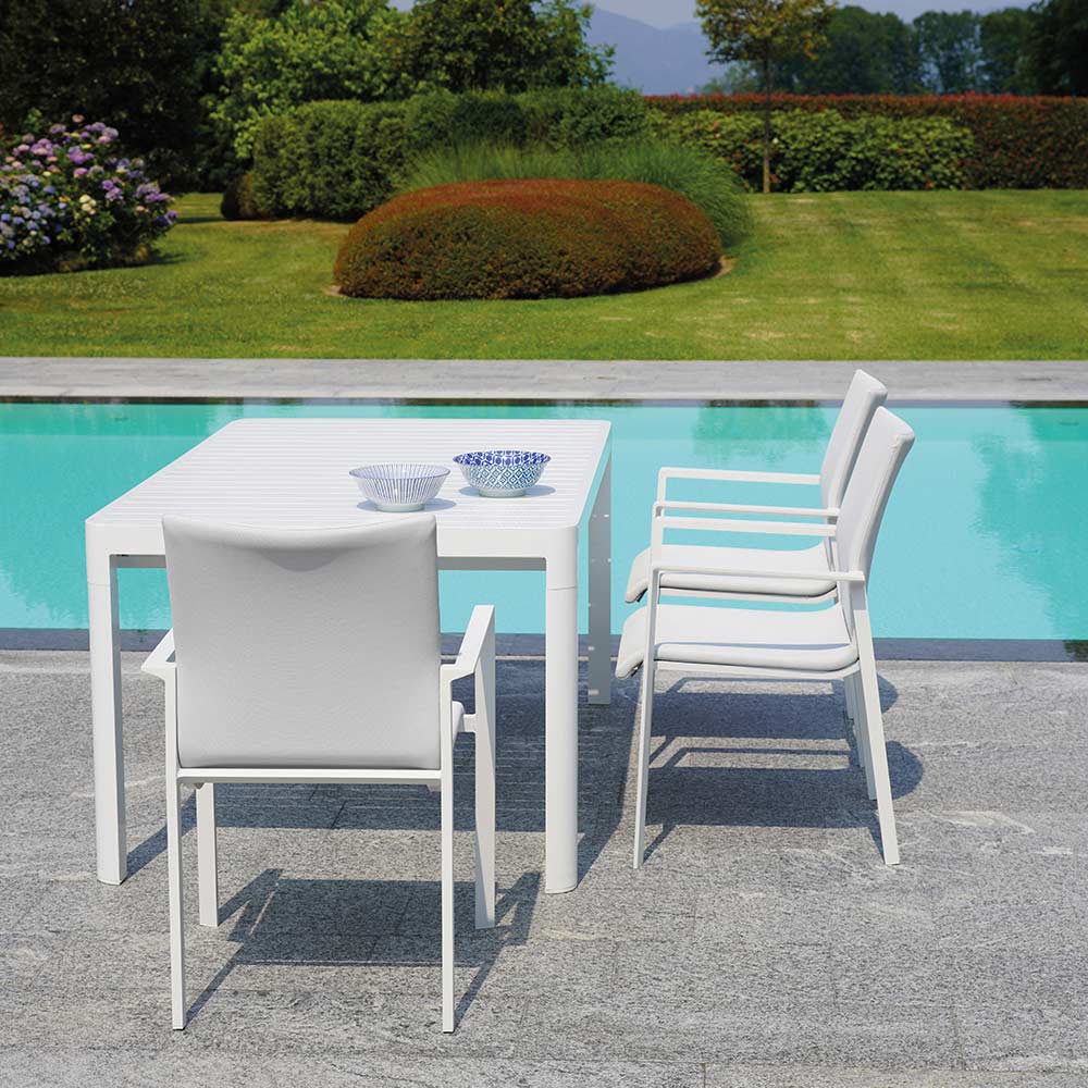 essentielle linjer med en sommersmag, ideel til at fuldende og berige enhver møbelstil, fra den klassiske have eller hjemmeterrasse til det mest eksklusive kontraktmiljø. Dette bord er moderne og funktionelt, perfekt til formelle og uformelle lejligheder, hvor det vinder centrum for opmærksomheden takket være dets