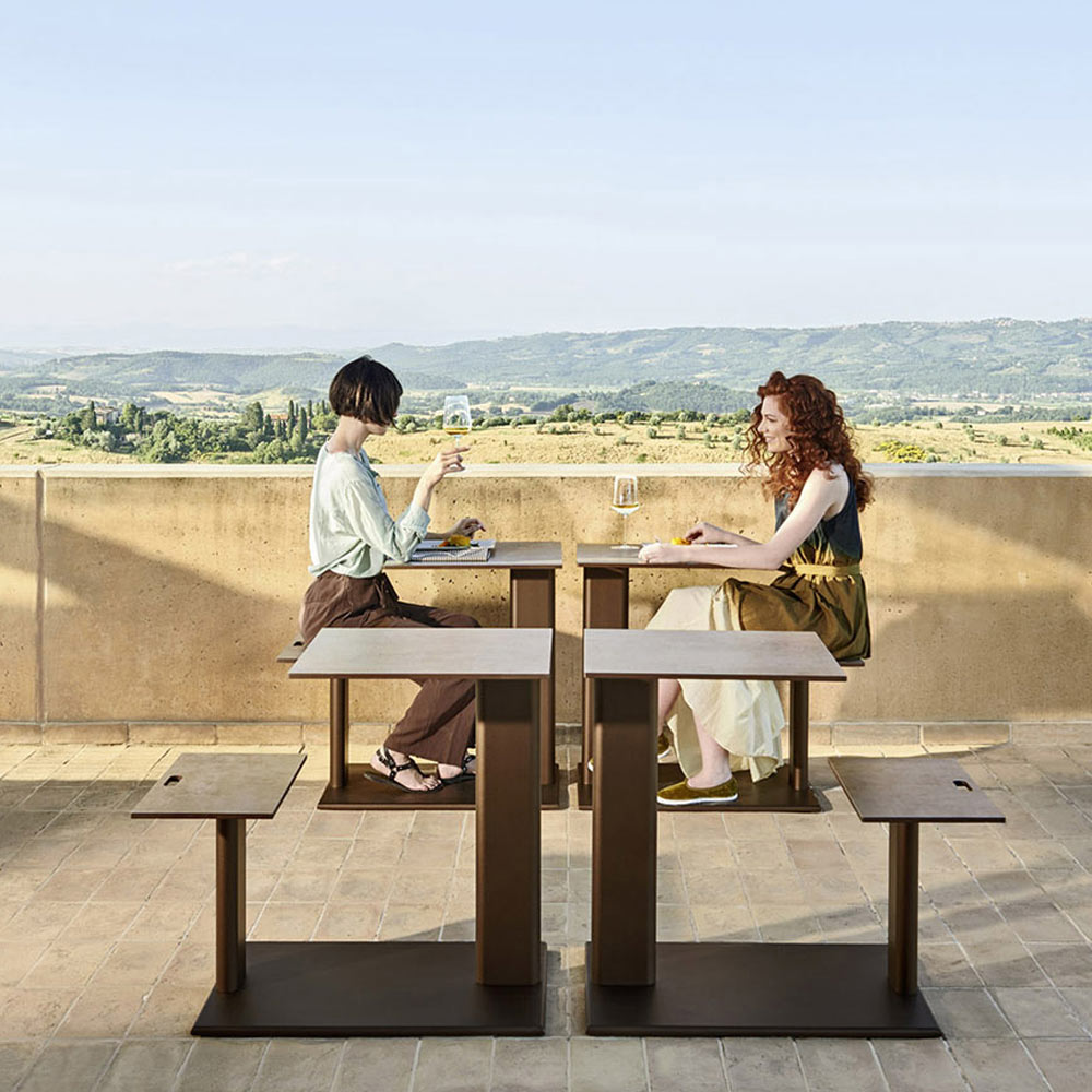 essentielle, alsidige og moderne design er dette bord med sæde perfekt til at fuldende indretningen af forskellige opholdsområder, både indendørs og udendørs, hvilket beriger miljøets æstetik med personlighed og et