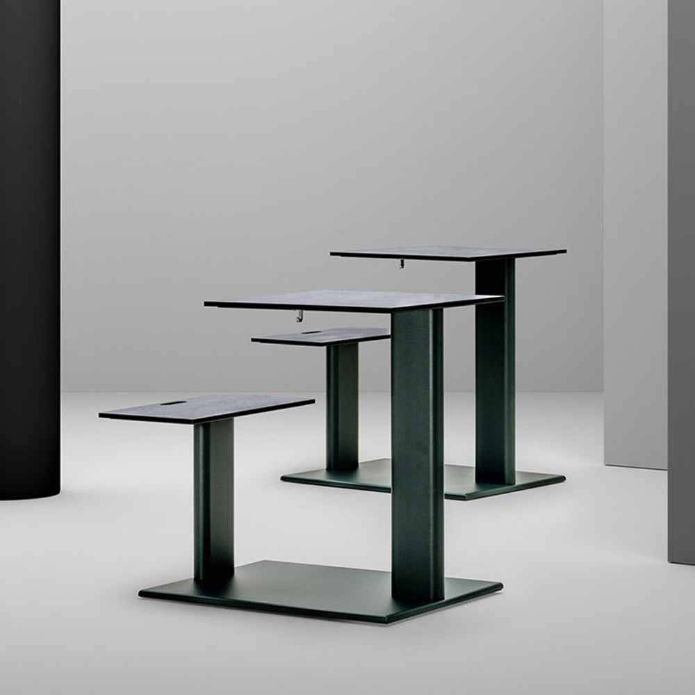 Bord med samlet sæde i aluminium og plade i farvet HPL Made in Italy.