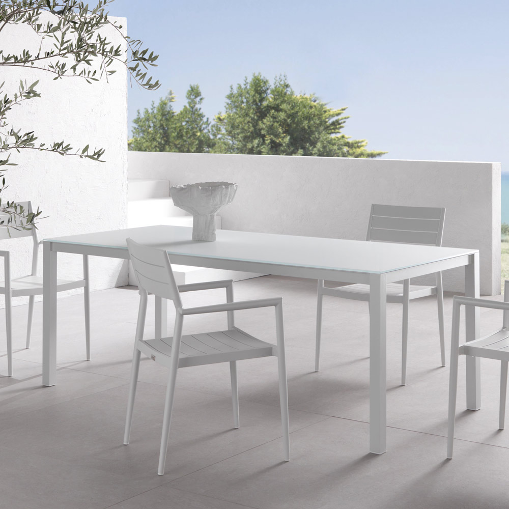 Have spisebord med epoxy pulverlakeret aluminium struktur og bagsidemalet glasplade